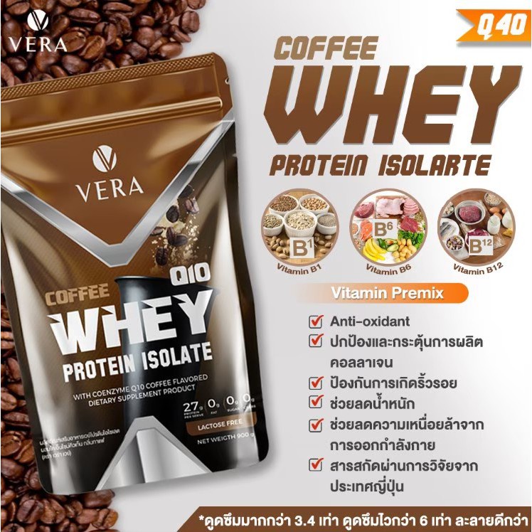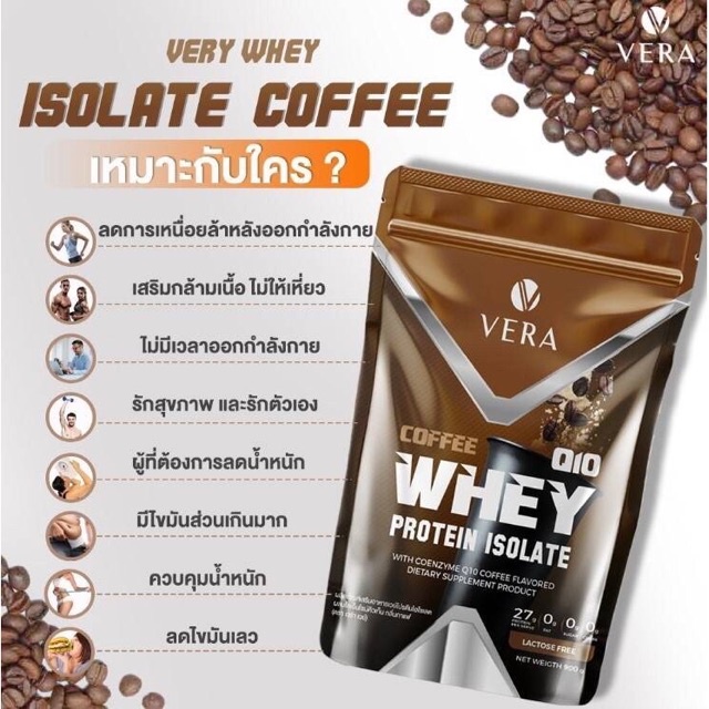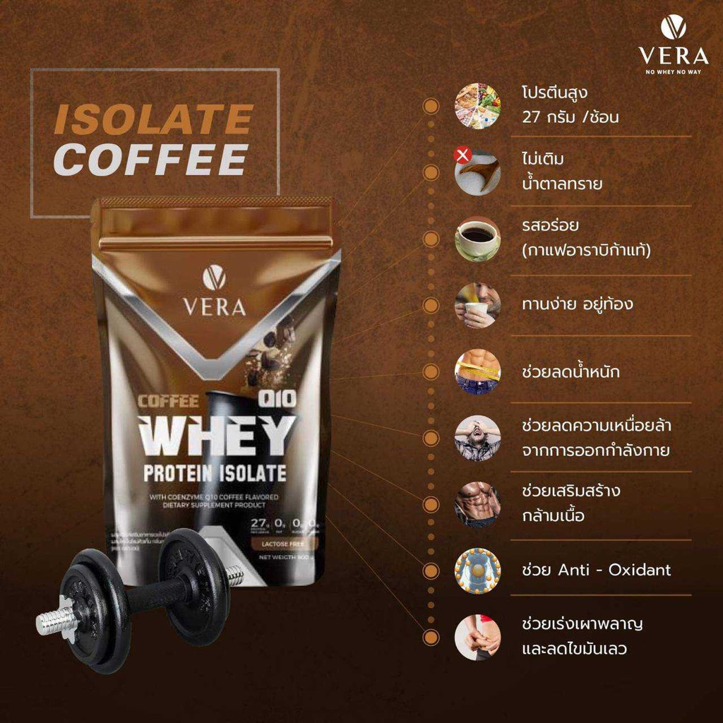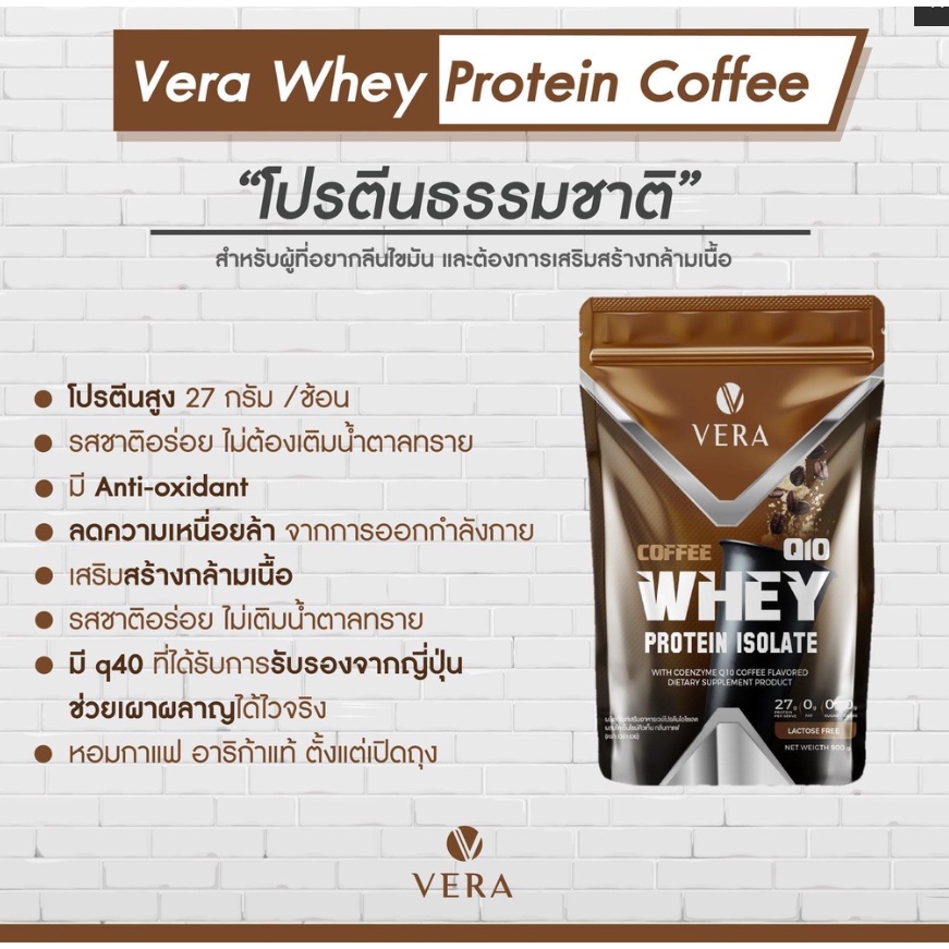 Vera Whey เวย์โปรตีน รสกาแฟ หุ่นลีน ไขมันต่ำ โปรตีนสูง ไม่มีน้ำตาล ละลายง่าย ขนาด 900 g.
