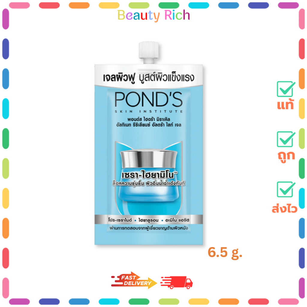 (1 ซอง) Pond's เจลพอนด์ส ไฮดร้า ผิวฉ่ำเด้งฟู หน้าใส เจลผิวฟู (ปริมาณ 6.5 กรัม)