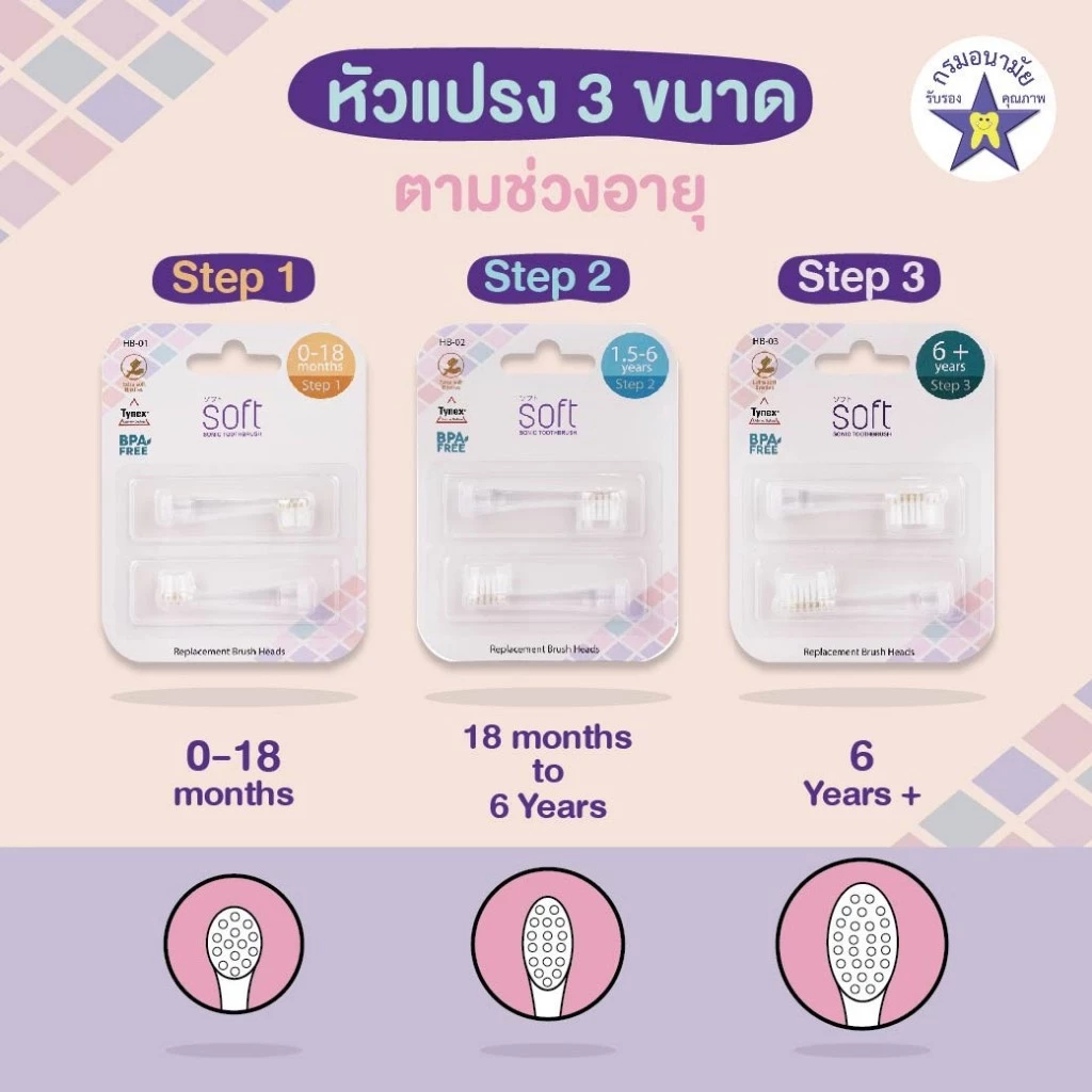 SOFT หัวแปรงสีฟันสำหรับแปรงสีฟัน Step1/ Step2/ Step3