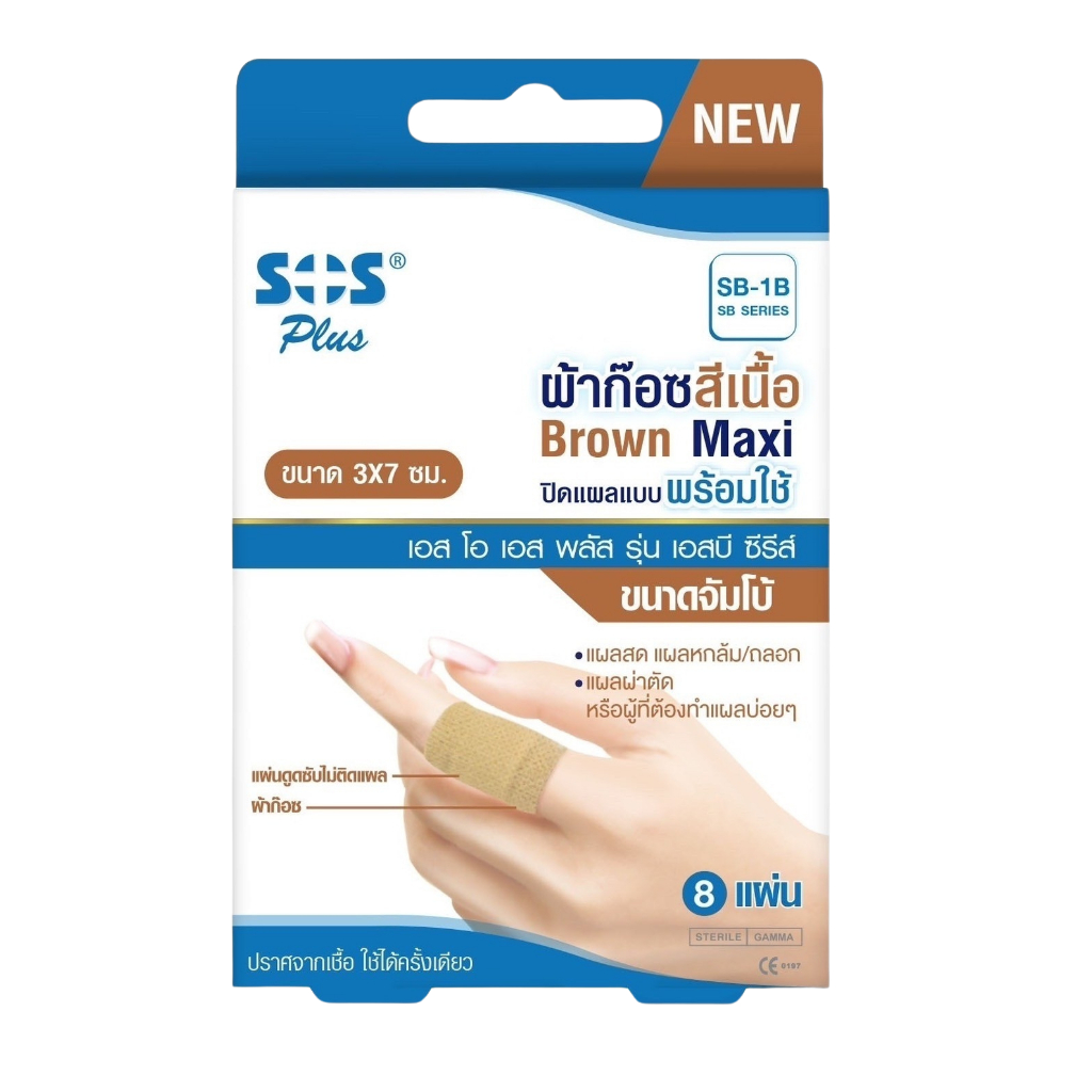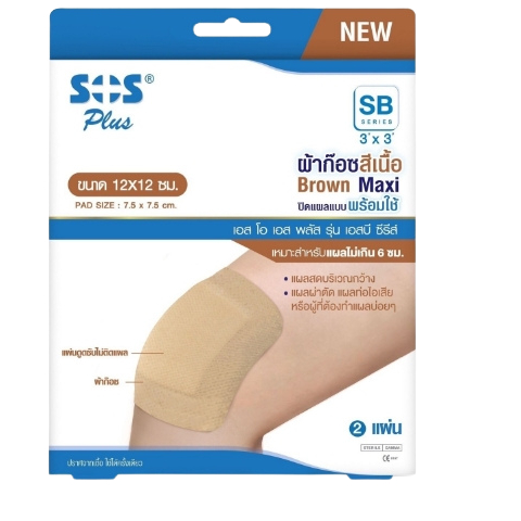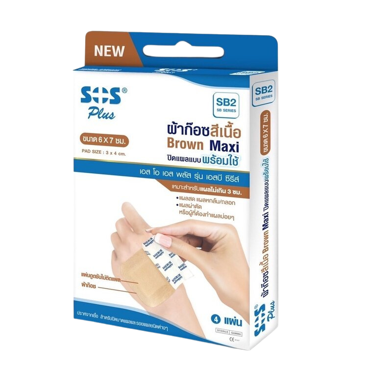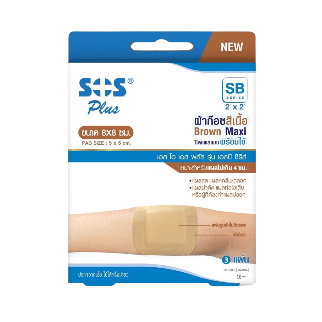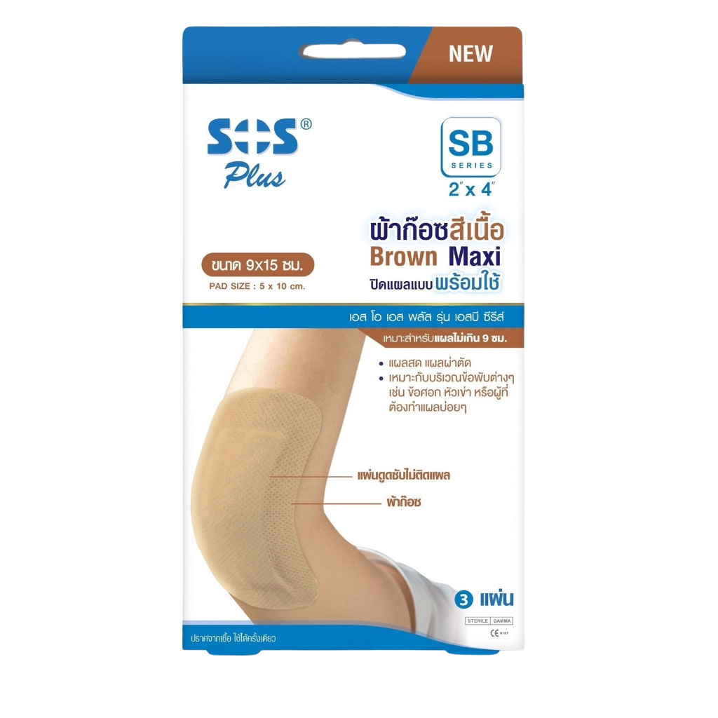 Sos Plus SB SERIES ผ้าก๊อซสีเนื้อ SB2/SB3 Brown Maxiผ้าก๊อซสีเนื้อปิดแผลพร้อมใช้ เอส โอ เอส พลัส #L1