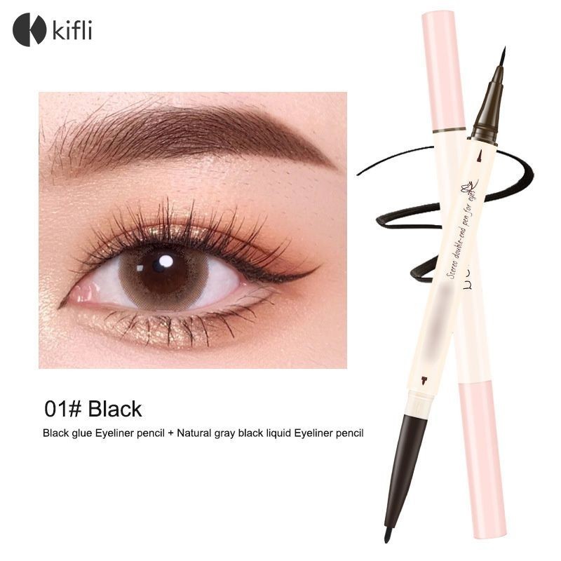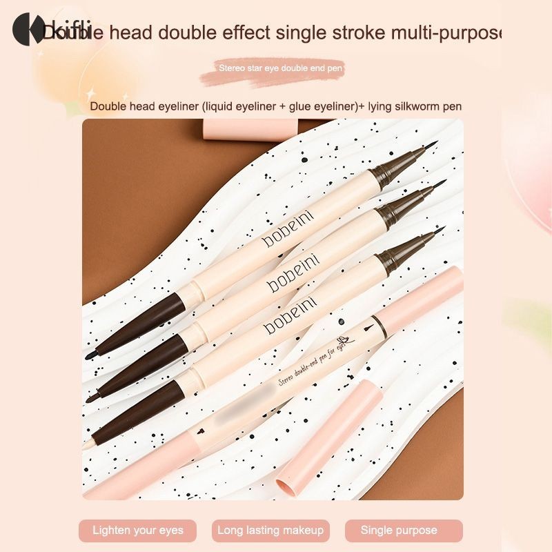 kifli.thสามมิติ Double Head Eyeliner Liquid Pen กันน้ํายาวนาน Non Smudge Silkworm Pen-KI