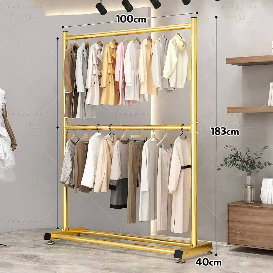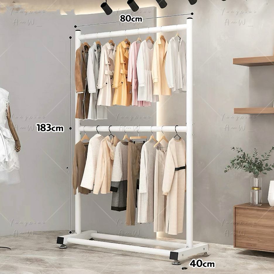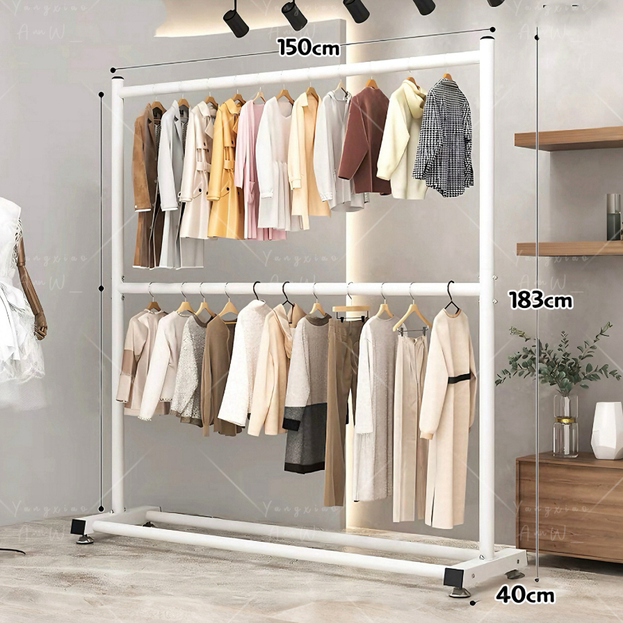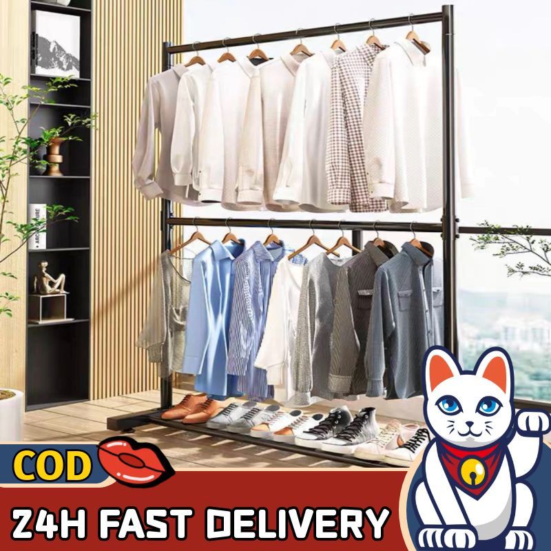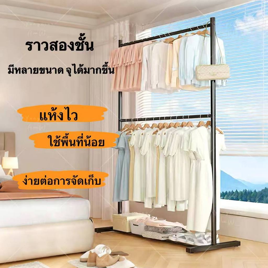 Lucky😸ราว 2ชั้น ราวตากผ้า ราวเเขวนผ้าเหล็ก โครงเหล็กเเข็งเเรง เเขวนได้30ตัว+ ราวตากผ้า ชั้นวางของ ราวแขวนผ้าร