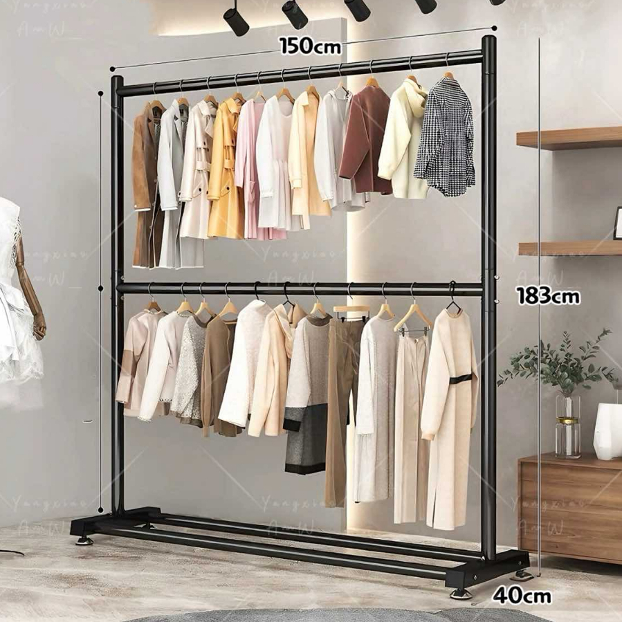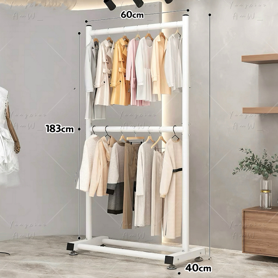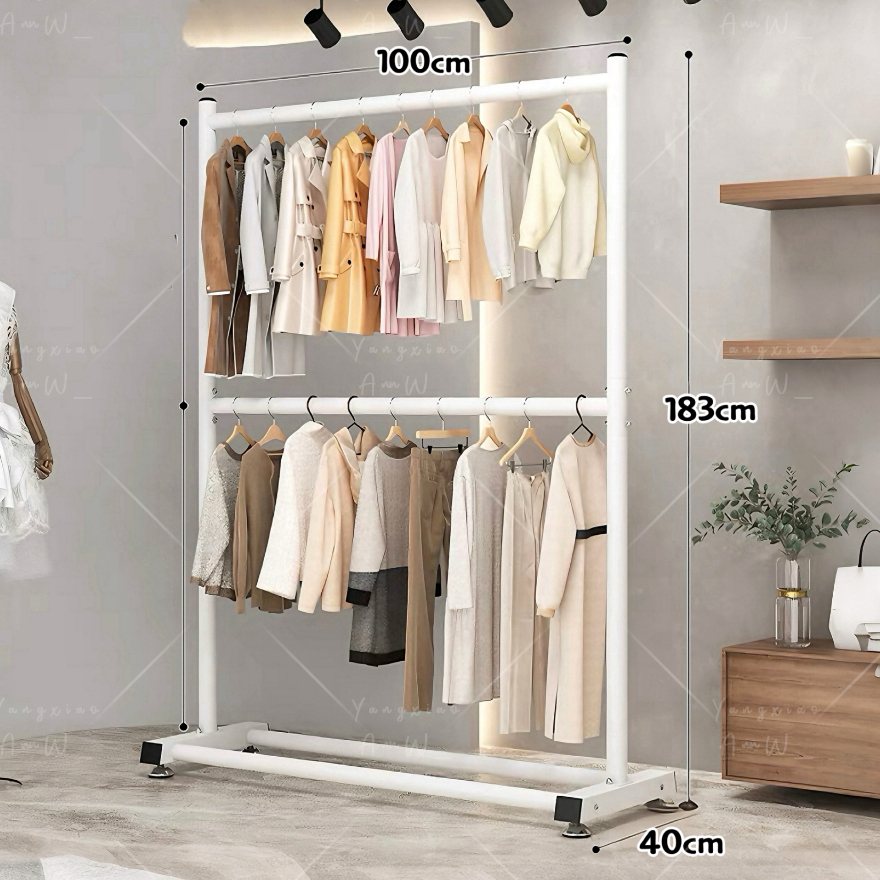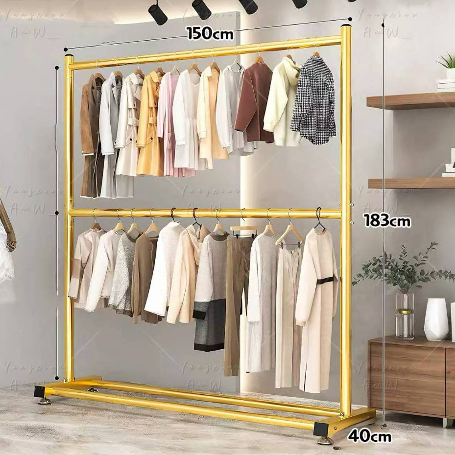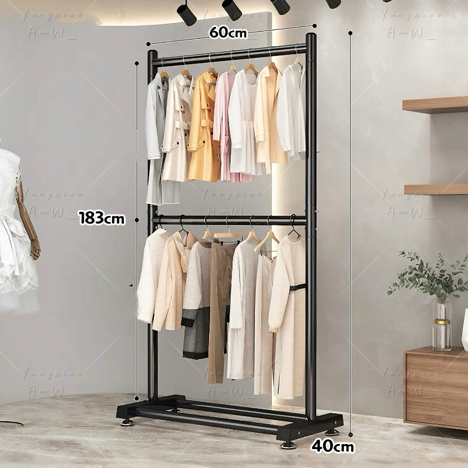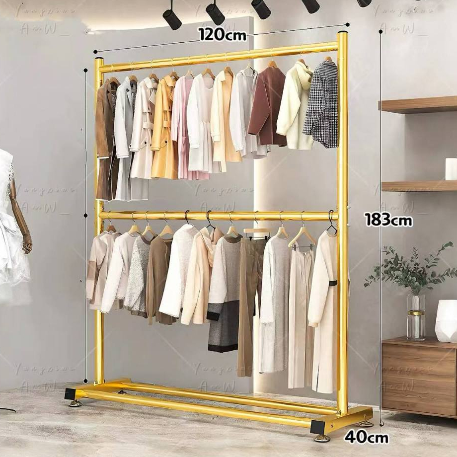 Lucky😸ราว 2ชั้น ราวตากผ้า ราวเเขวนผ้าเหล็ก โครงเหล็กเเข็งเเรง เเขวนได้30ตัว+ ราวตากผ้า ชั้นวางของ ราวแขวนผ้าร