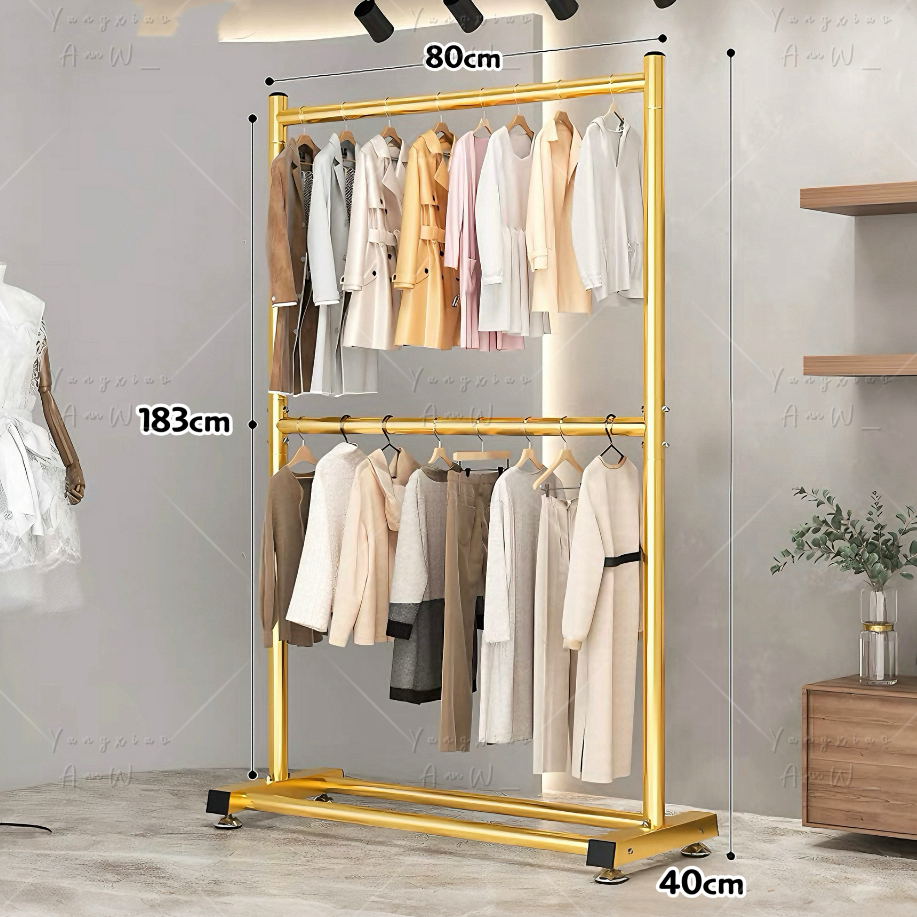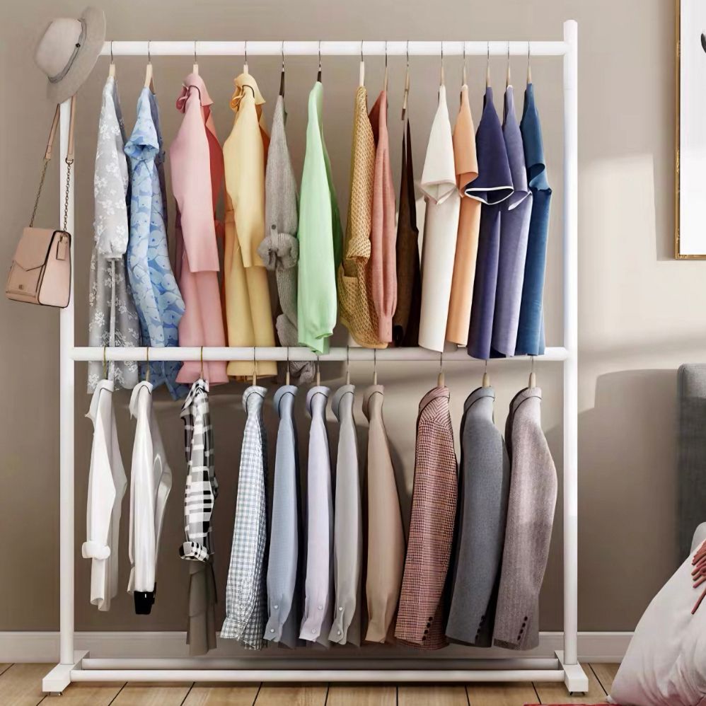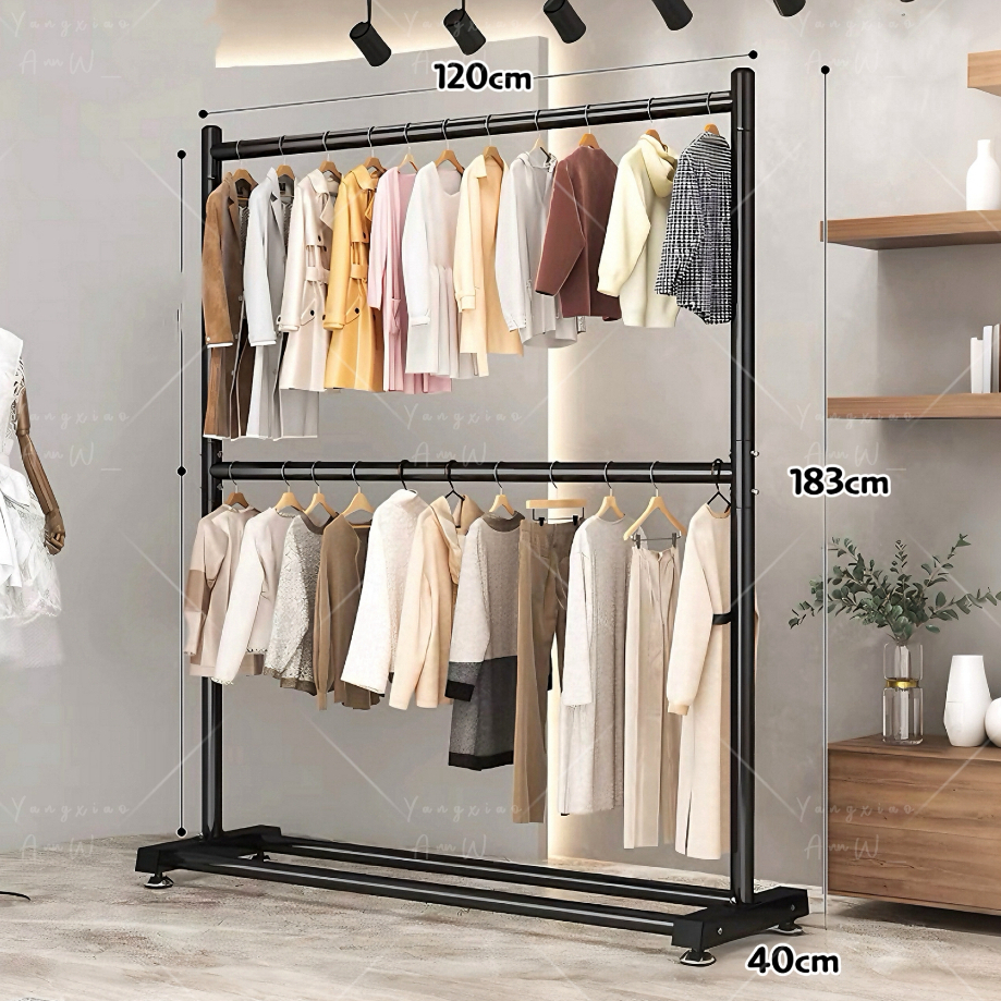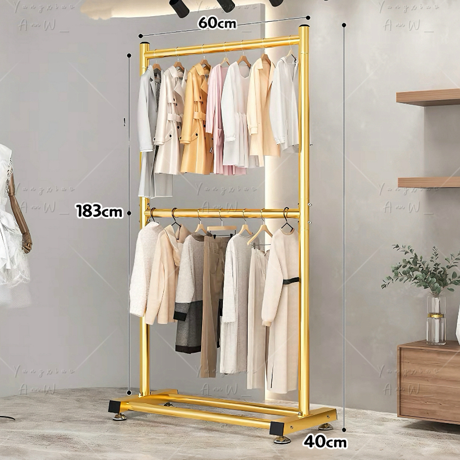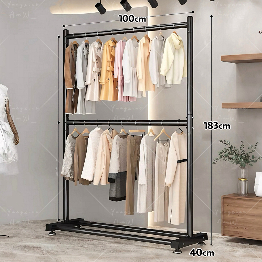 Lucky😸ราว 2ชั้น ราวตากผ้า ราวเเขวนผ้าเหล็ก โครงเหล็กเเข็งเเรง เเขวนได้30ตัว+ ราวตากผ้า ชั้นวางของ ราวแขวนผ้าร