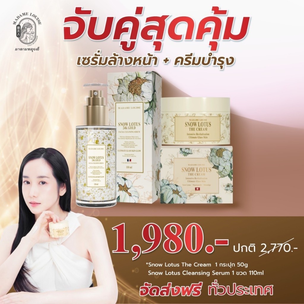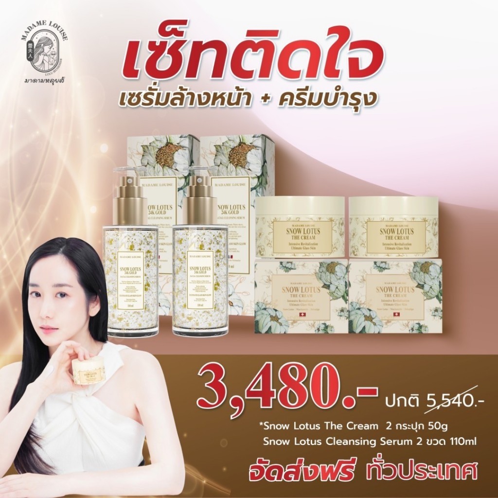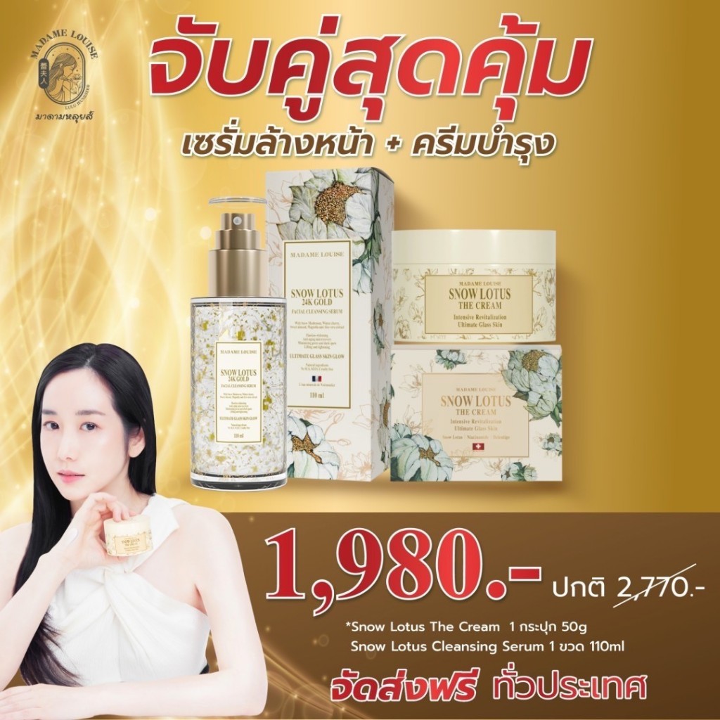 มาดามหลุยส์ Snow Lotus 24K Gold Serum Cleanser + The Cream [เซรั่มล้างหน้าสูตรพรีเมียม + ครีมบำรุงล้ำลึก]