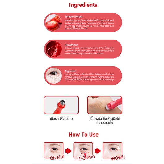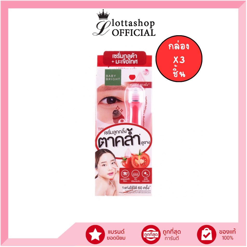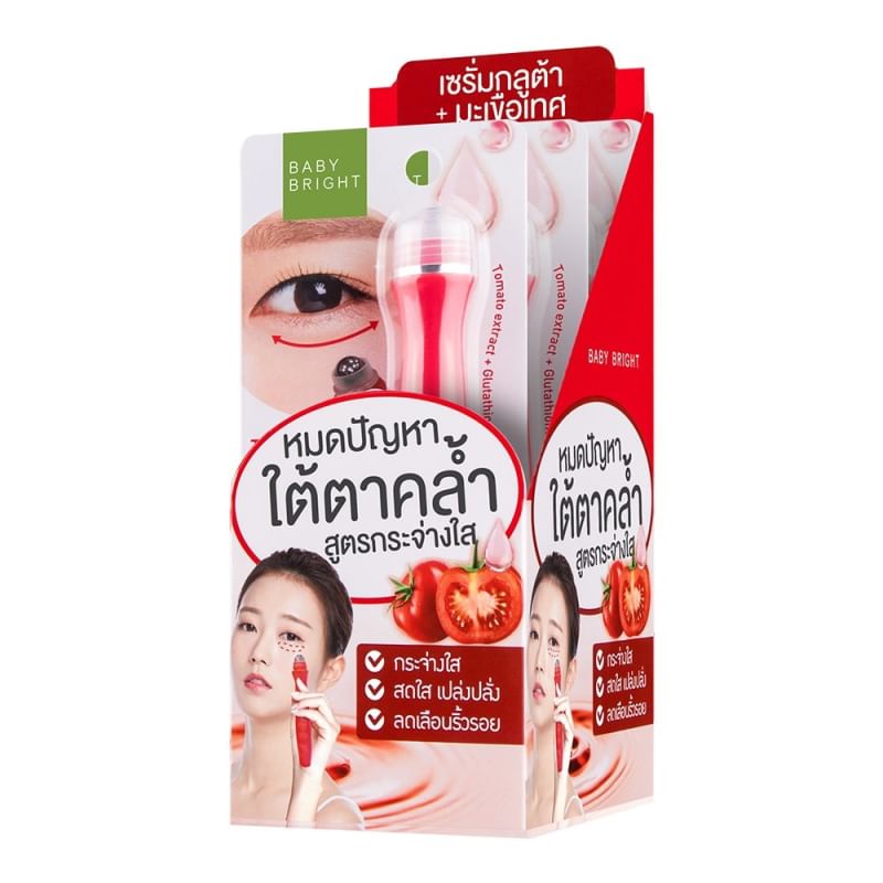 (กล่องX3ชิ้น) Baby Bright Tomato & Gluta Bright Eye Roller Serum 15ml.