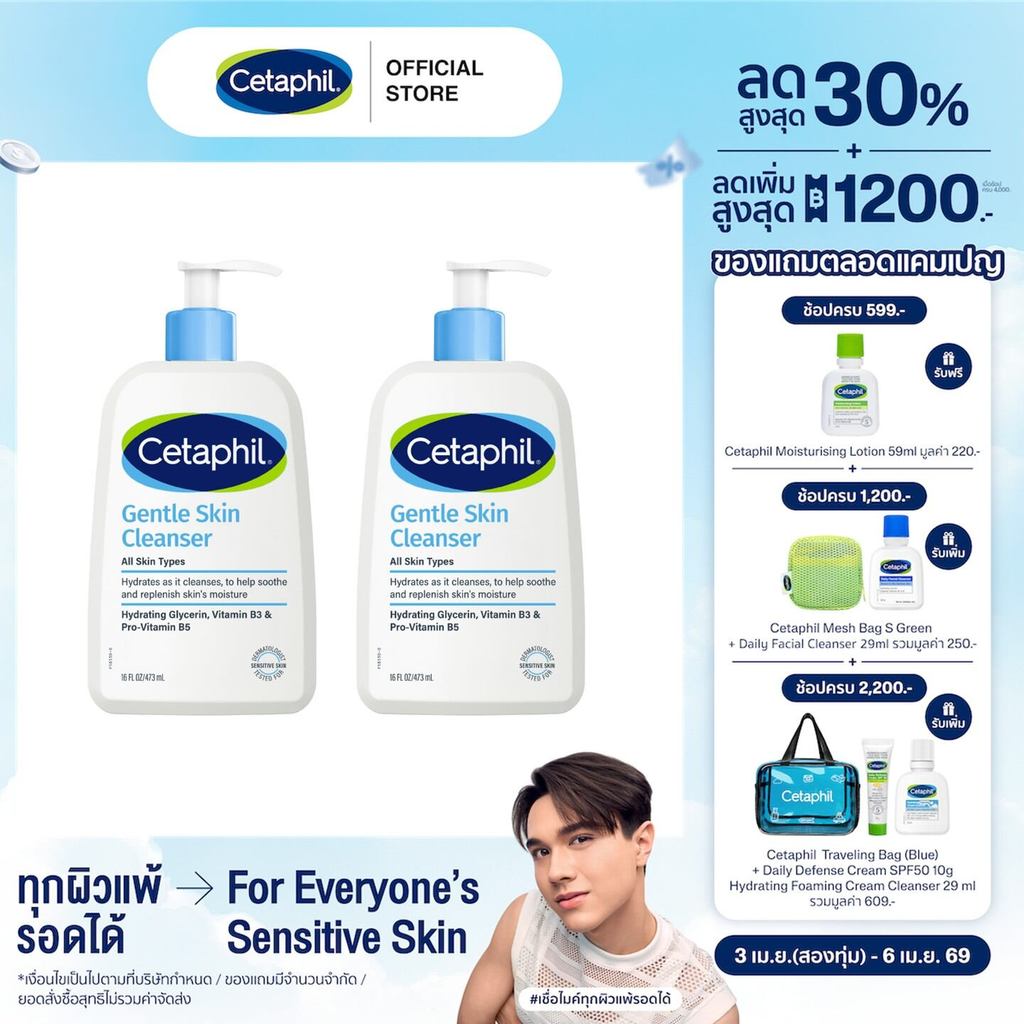 [แพ็คคู่สุดคุ้ม] Cetaphil Gentle Skin Cleanser 473 ml. x2 เซตาฟิล เจนเทิล สกิน คลีนเซอร์ 473 มล. x2 (แพ็คเกจใหม่)