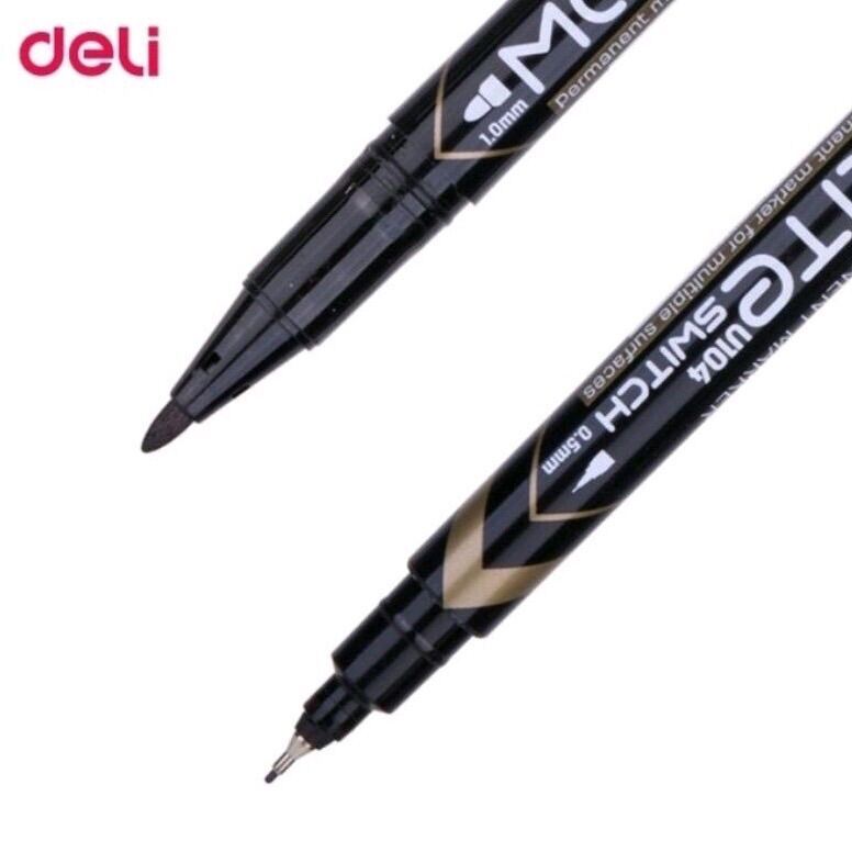 (1 ด้าม) ปากกามาร์คเกอร์ เขียนซีดี เมจิก 2 หัว เขียนโมเดล (0.5mm-1mm) Deli Permanent Marke U10420