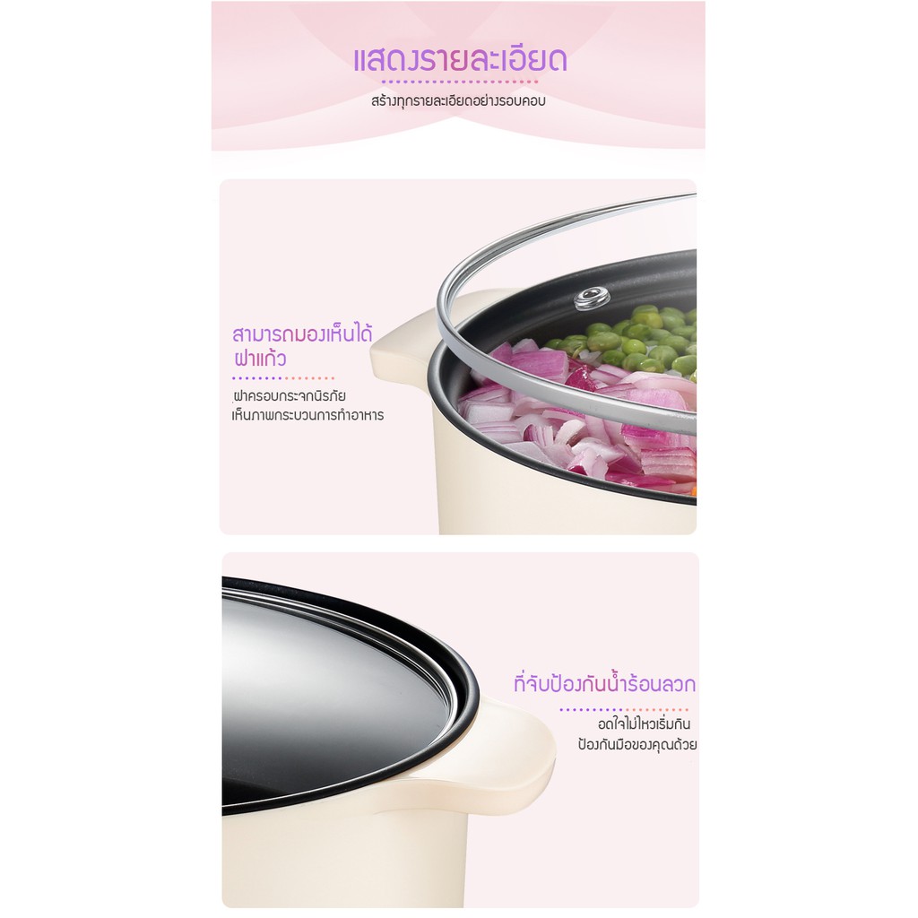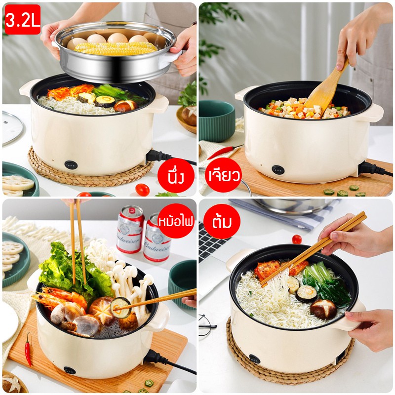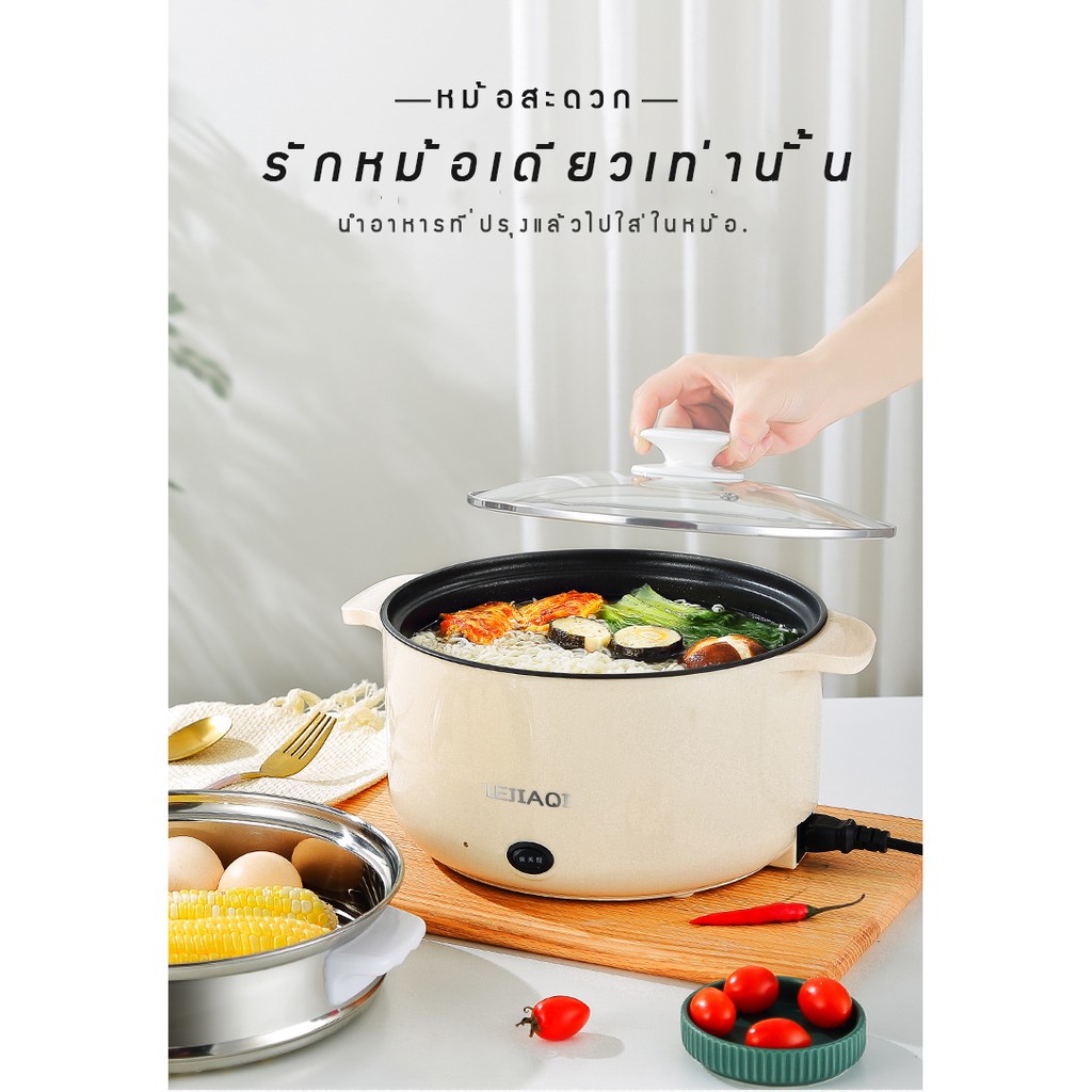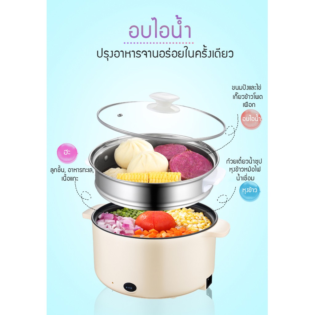 หม้อไฟฟ้าอเนกประสงค์ หุงข้าว ต้ม ผัด ทอด อุ่น ตุ๋น นึ่ง ขนาด 24ซม ครบจบในหม้อเดียว พร้อมซึ้งสำหรับนึ่งอาหารวัสดุแสตนเลส