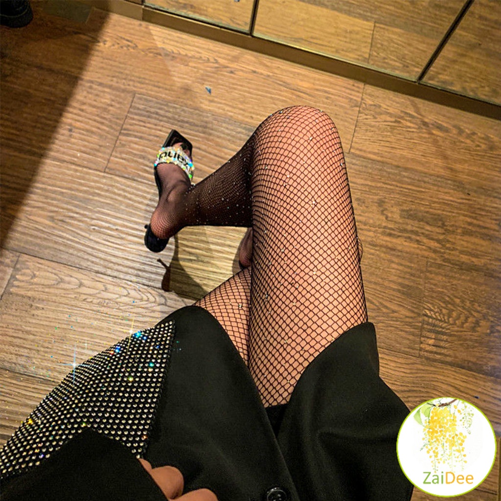 ถุงน่องตาข่าย เอวสูง ประดับพลอยเทียม แวววาว เซ็กซี่ สําหรับผู้หญิง งานปาร์ตี้ คลับ ถุงน่องตาข่ายเซ็กซี่ Mesh sock