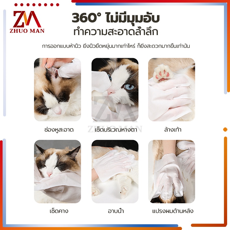 ถุงมืออาบน้ำแมว สุนัข แบบแห้ง ทำความสะอาดและการฆ่าเชื้อ ผ้านอนวูฟเวนคุณภาพสูง ใช้แล้วทิ้ง