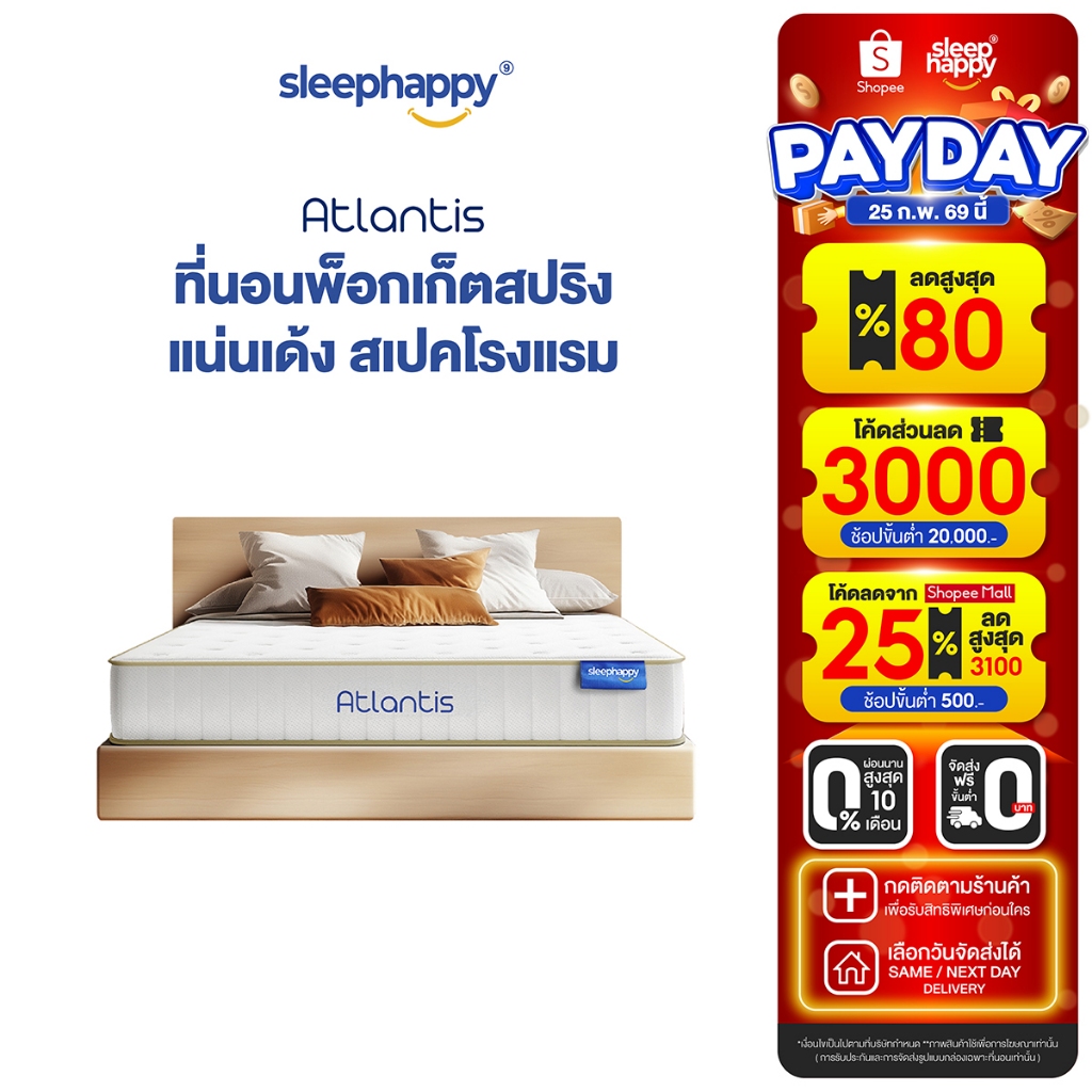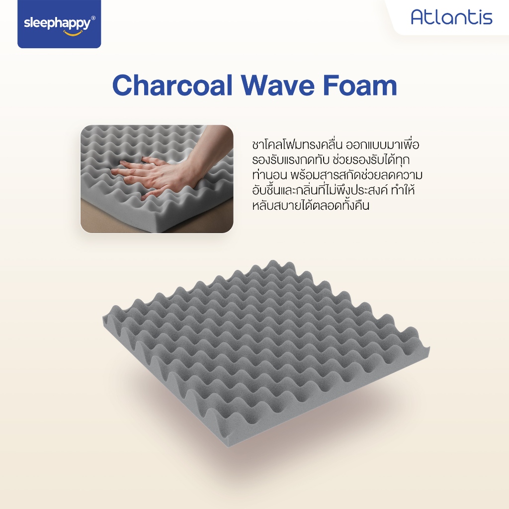 SleepHappy ที่นอนพ็อกเก็ตสปริง ผสานนวัตกรรมชาโคล รุ่น Atlantis หนา 10 นิ้ว และ Atlantis Lite หนา 7 นิ้ว