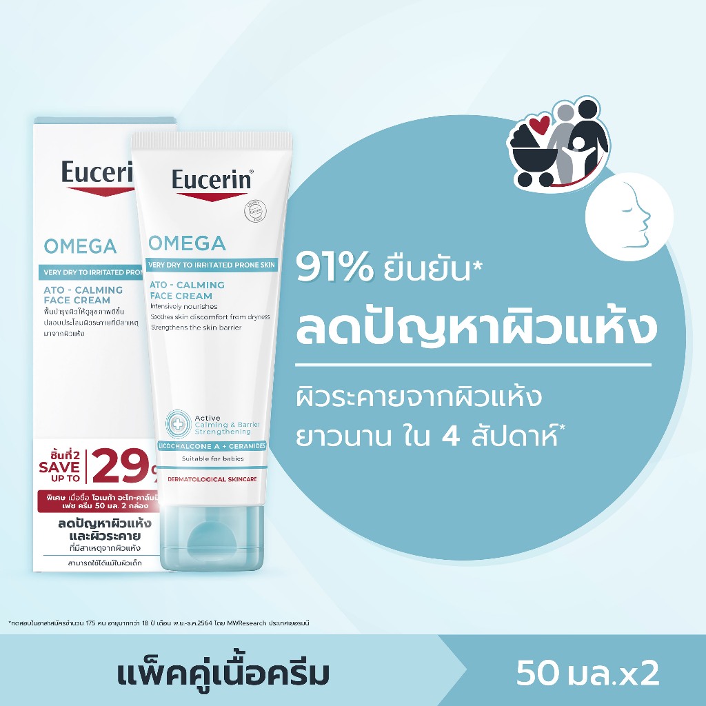 Eucerin ยูเซอริน โอเมก้า อะโท-คาล์มมิ่ง เฟซ ครีม ดับเบิ้ล แพ็ค 2 ชิ้น