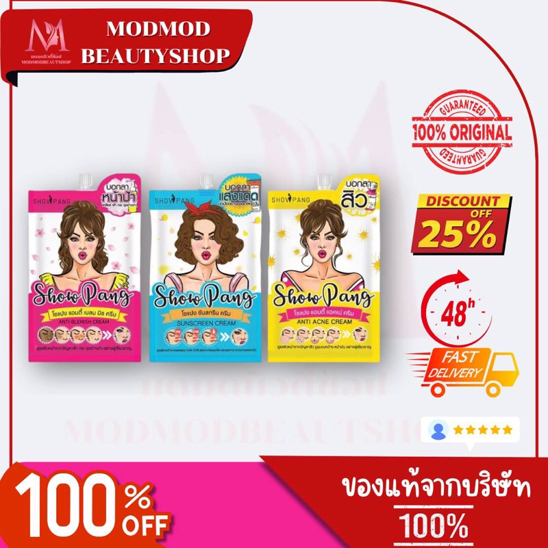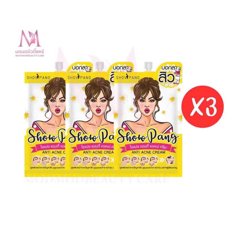 (💥💥โปรลูกค้าใหม่89บาท💥💥)(3 ซอง) SHOWPANG CREAM 8g. โชแปง ครีม มีให้เลือก 3 สูตร Anti-Acne/ Anti-Blemish/ Sunscreen
