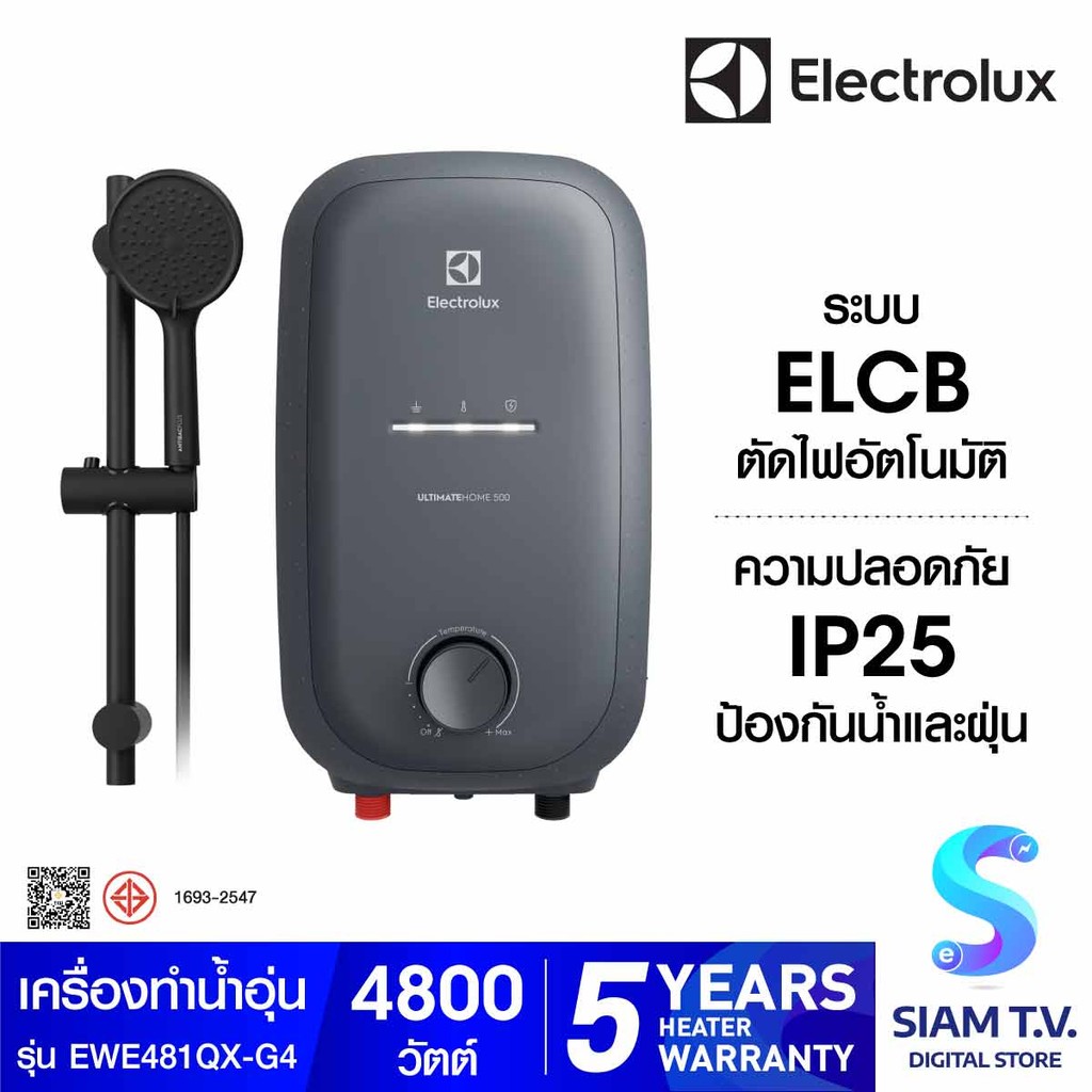 ELECTROLUX เครื่องทำน้ำอุ่น4800W+ราวสไลด์ สีดำ Series500 รุ่น EWE481QXG4 โดย สยามทีวี by Siam T.V.
