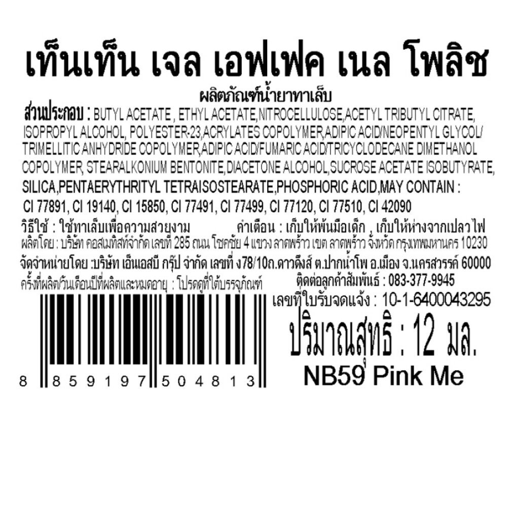 Ten Ten เท็น เท็น เจล เอฟเฟค เนล โพลิช 12มล. NB59 พิงค์ มี