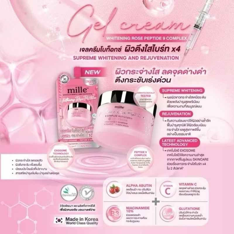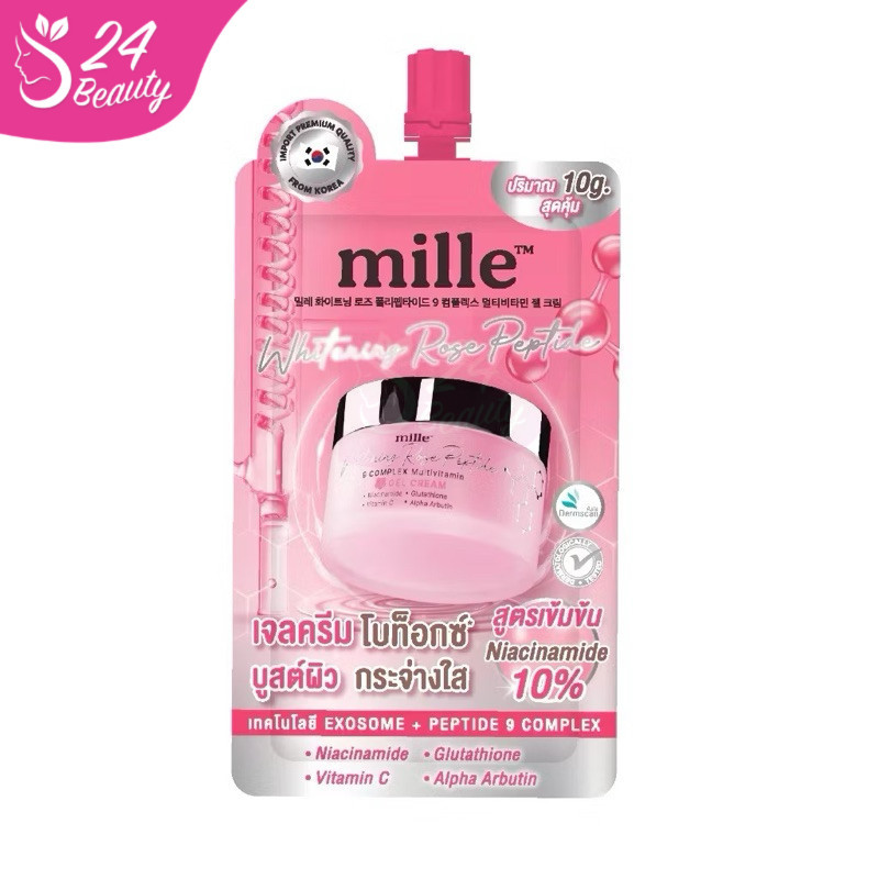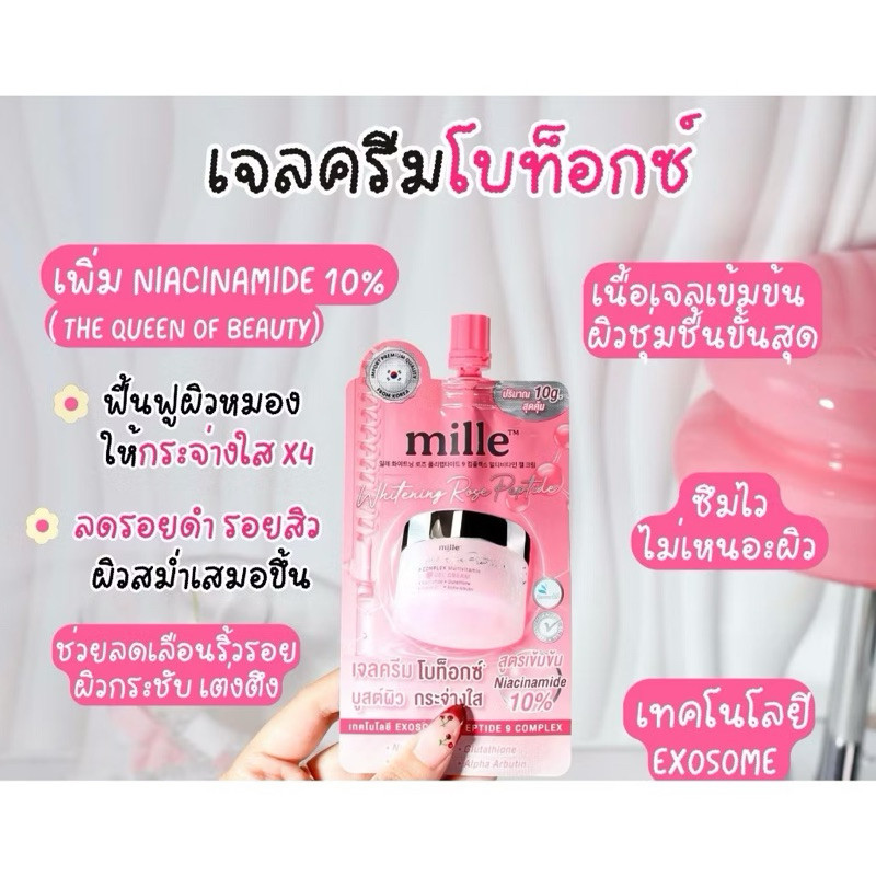 มิลเล่ เจลครีม โบท็อกซ์ บูสต์ผิว Mille Whitening Rose Peptide 9 Complex Gel Cream(1ซอง)