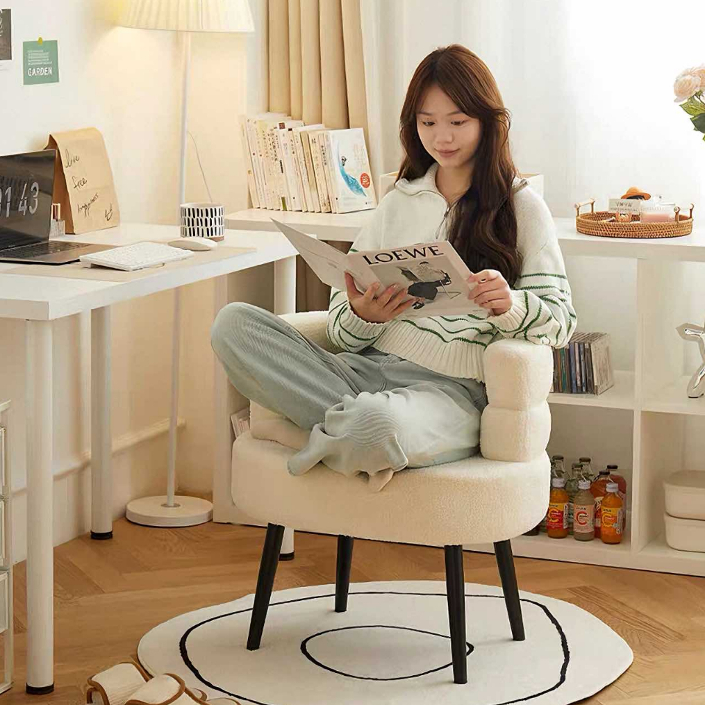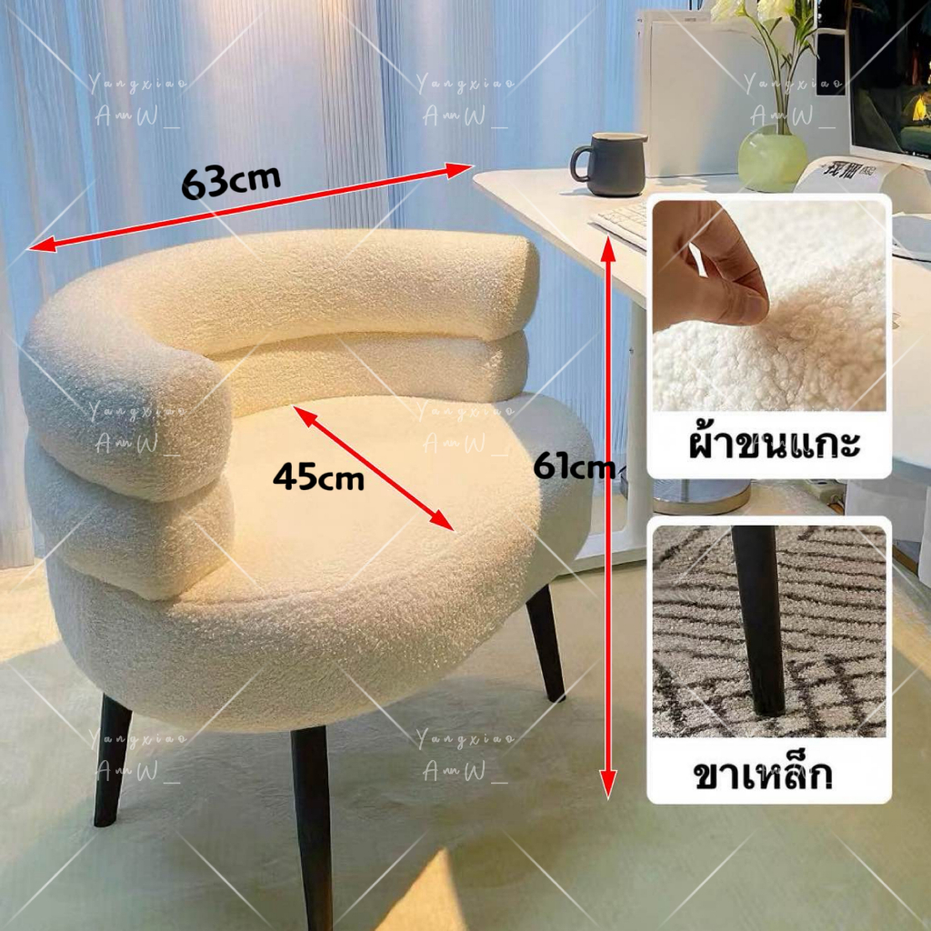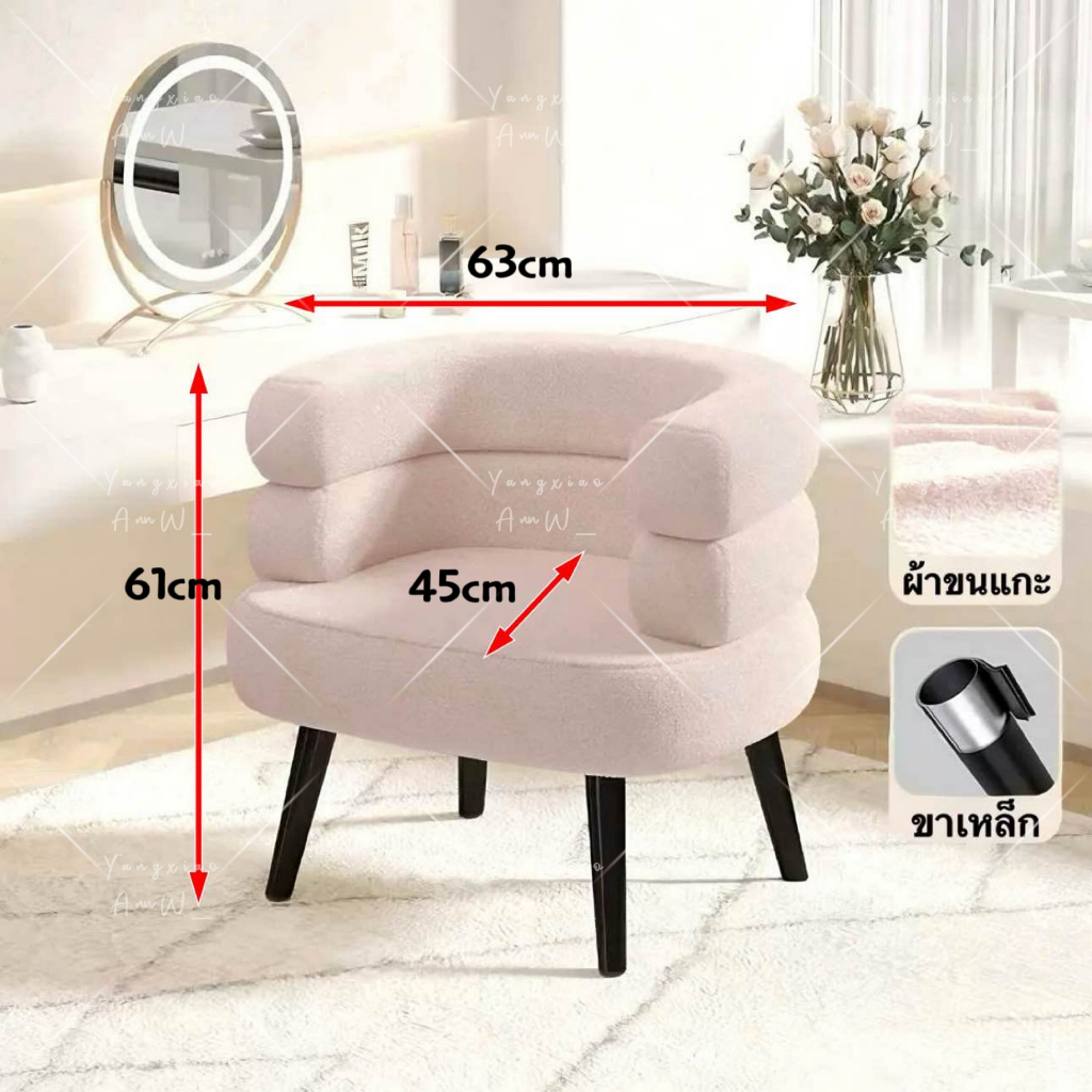 Dogegg🐶โซฟามินิมอล เก้าอี้แต่งหน้า ผ้าขนแกะ นุ่มสบาย ตกแต่งห้อง คาเฟ่ เบาะกว้างหนานุ่ม มี3สี