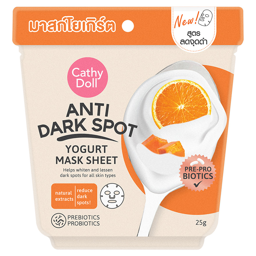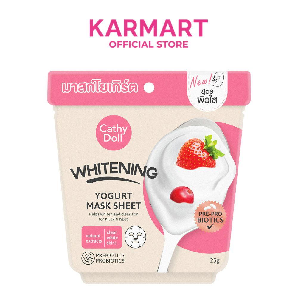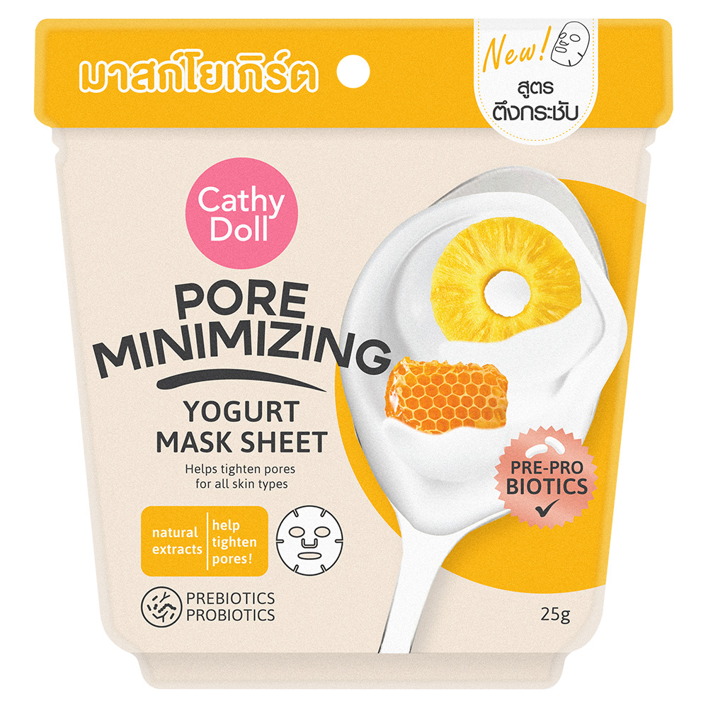 Cathy Doll โยเกิร์ตมาสก์ชีท 25g มี สูตรลดเลือนริ้วรอย, สูตรควบคุมความมัน,สูตรกระชับรูขุมขน