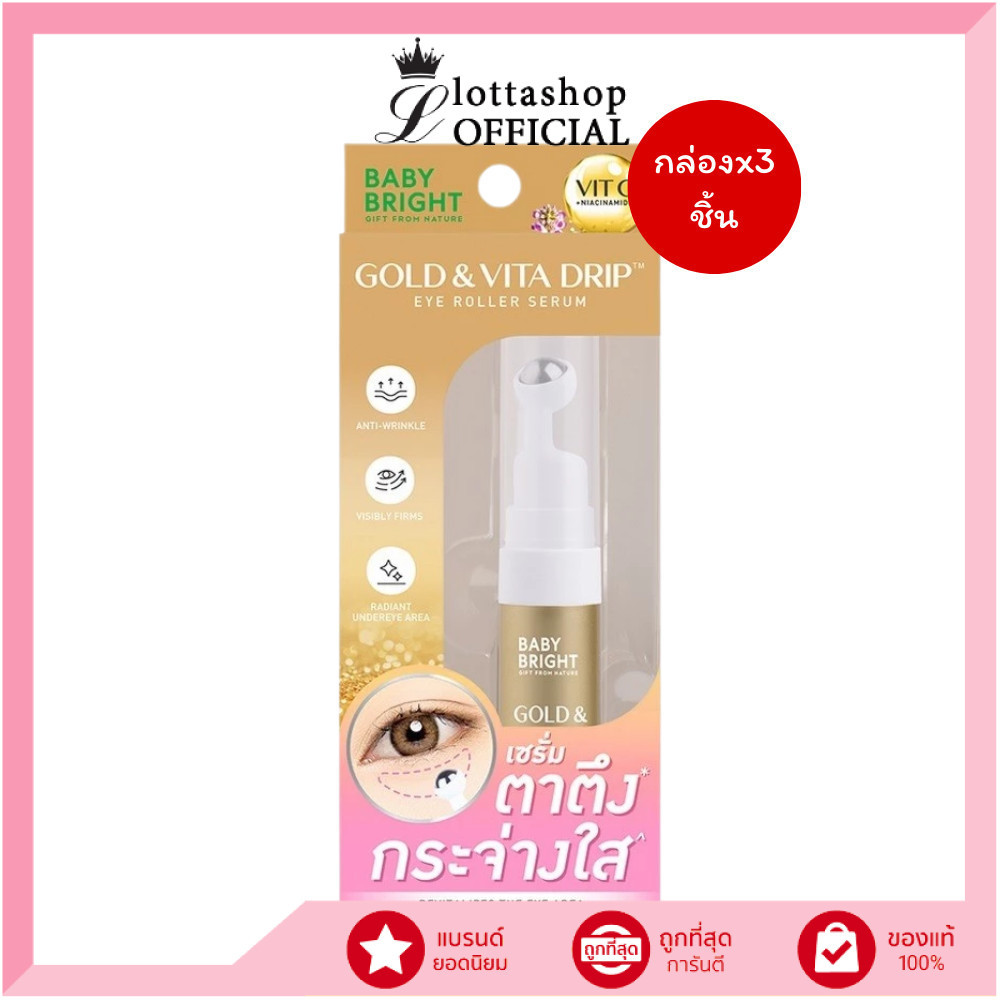 🔥แท้/ดีลสุดคุ้ม/ไลฟ์ทุกวัน🔥(กล่องx3ชิ้น) Baby Bright Gold & Vita Drip Eye Roller Serum 10ml.