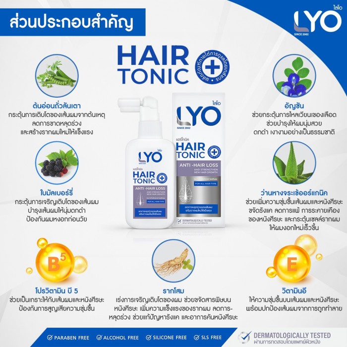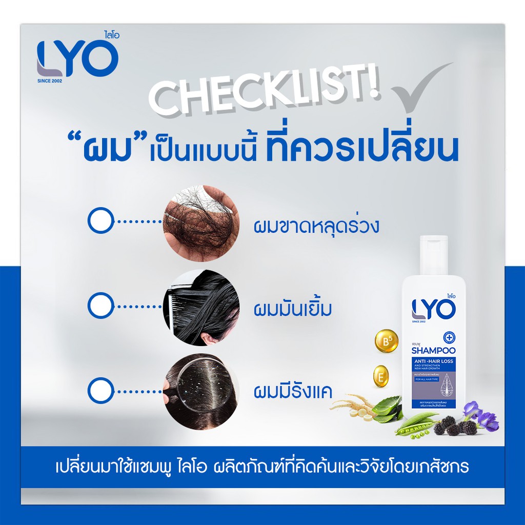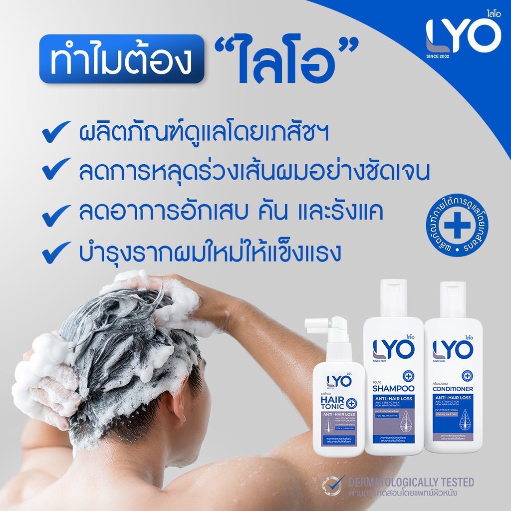 LYO ไลโอ หนุ่มกรรชัย ไลโอแชมพู ครีมนวด แฮร์โทนิค ดูแลเส้นผม และหนังศรีษะ สำหรับผู้มีปัญหาผมร่วง ผมบาง ผมเสีย
