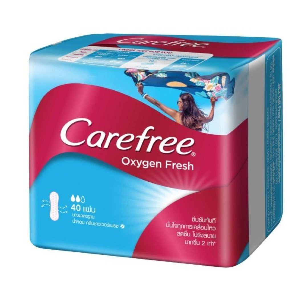 แคร์ฟรี ผ้าอนามัย ออกซิเจนเฟรช เรคกูล่าร์ 40ชิ้น Carefree Panty Liner Oxygen Fresh Regular 40 pcs