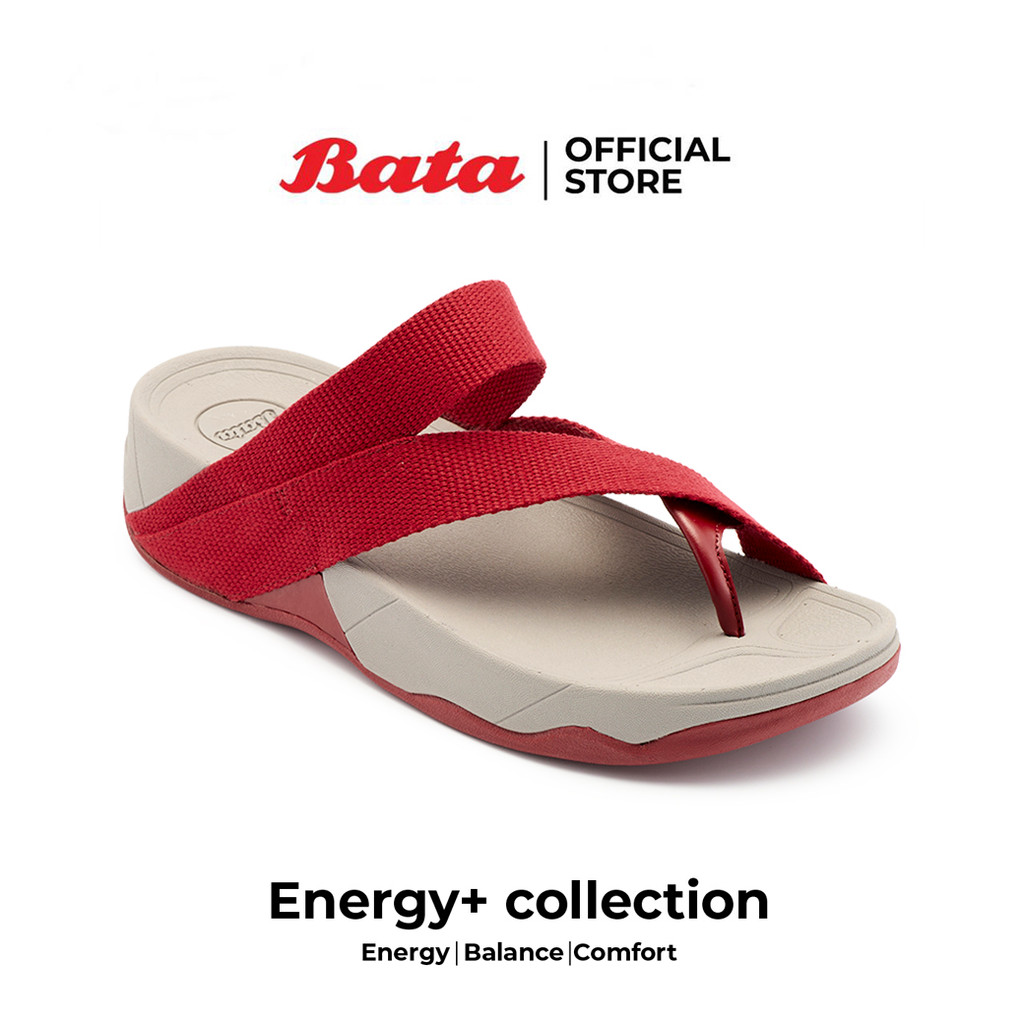 Bata บาจา Energy+ รองเท้าแตะลำลองแฟชั่นผู้ชาย รองเท้าแตะชาย รองเท้าส้นแบนแบบหนีบ สำหรับผู้ชาย - สีแดง 8795218