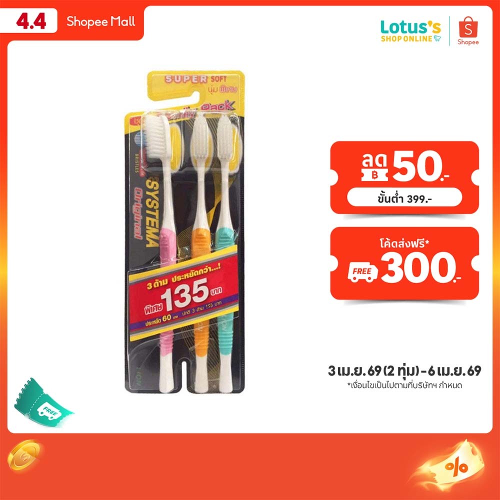 ซิสเท็มม่า แปรงสีฟัน ซุปเปอร์ ซอฟ (แพ็ค 3) SYSTEMA TOOTH BRUSH SUPER SOFT (PACK 3)