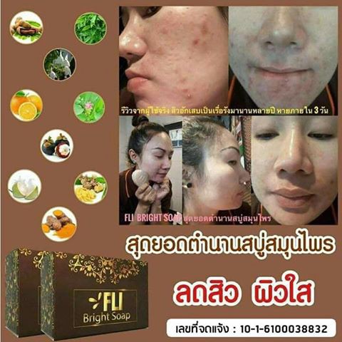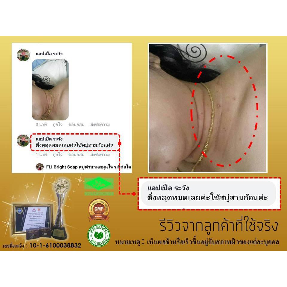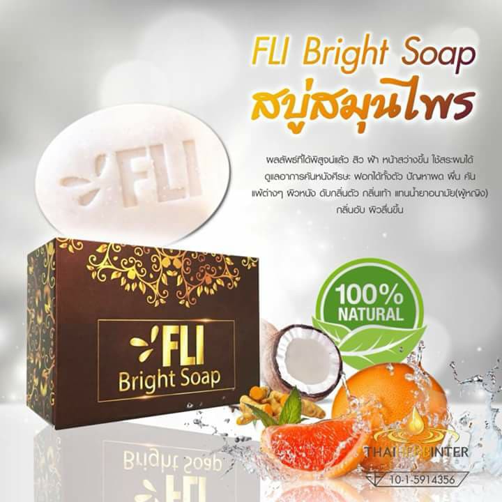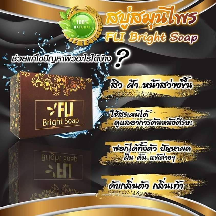 ใหม่! FLI Bright Soap สบู่ เอฟแอลไอ ลดติ่งเนื้อ ขัดขี้ไคล สบู่สมุนไพรแท้100% (120g.)