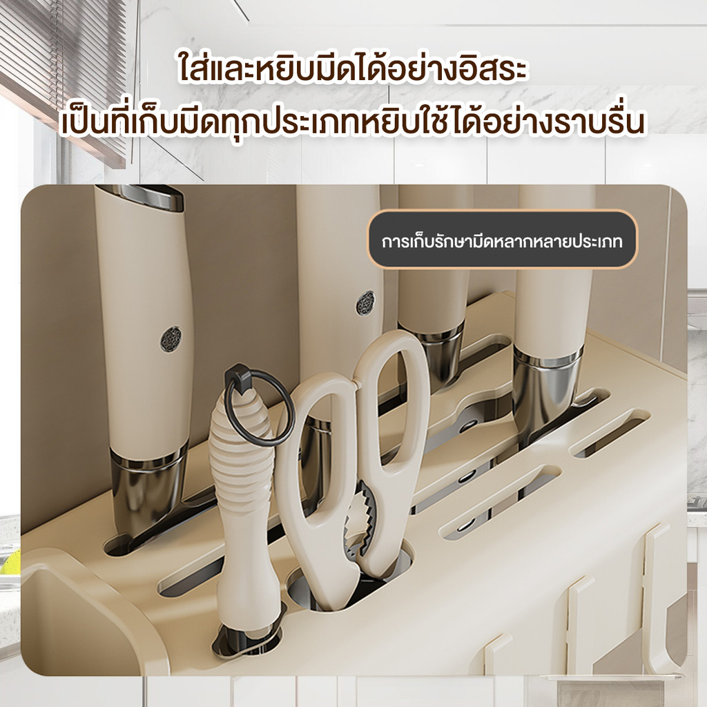ที่เสียบมีด กล่องเก็บมีดแบบแขวน ที่เก็บมีดอเนกประสงค์ ระบายน้ำและระบายอากาศ ไม่ต้องเจาะรู ของใช้ในครัวเรือน