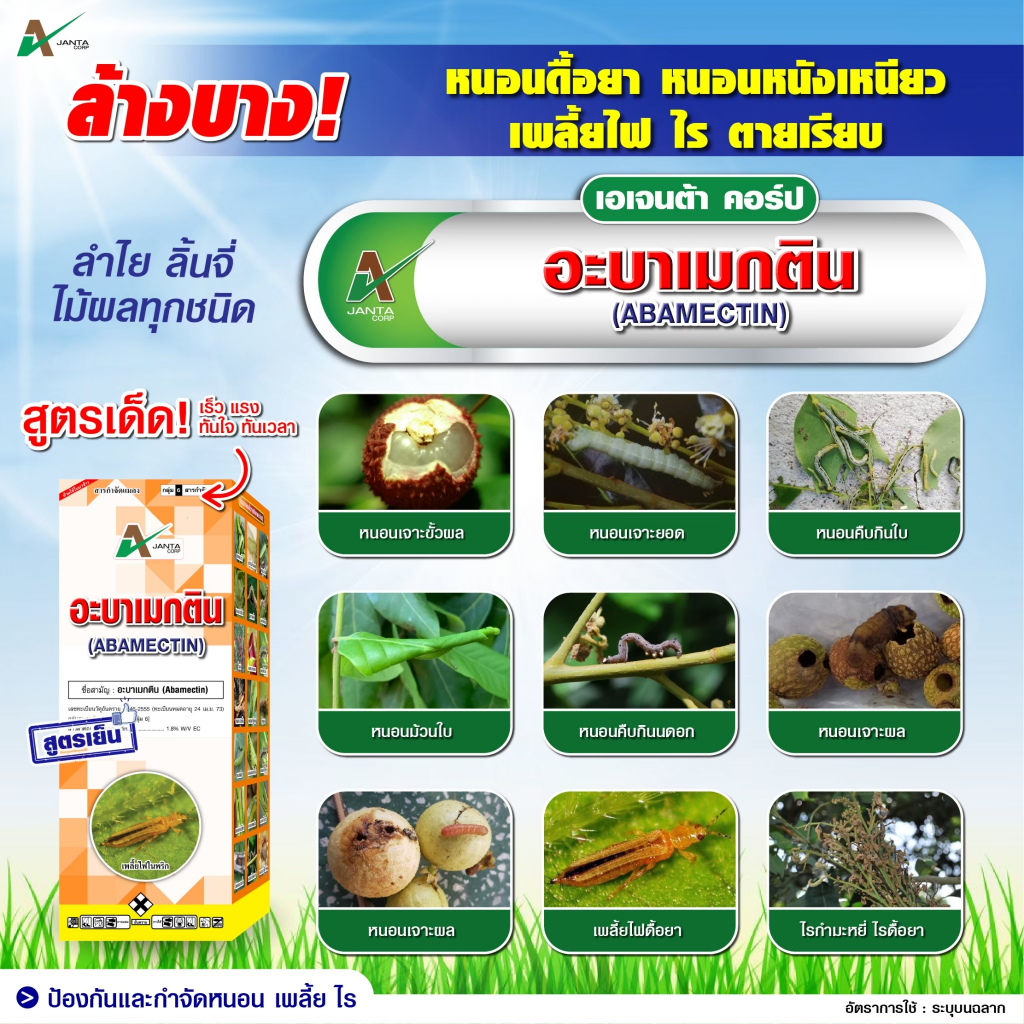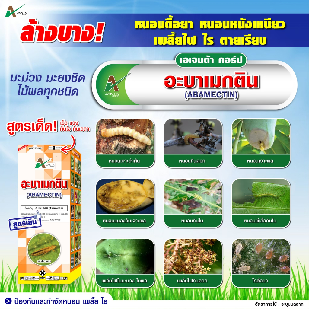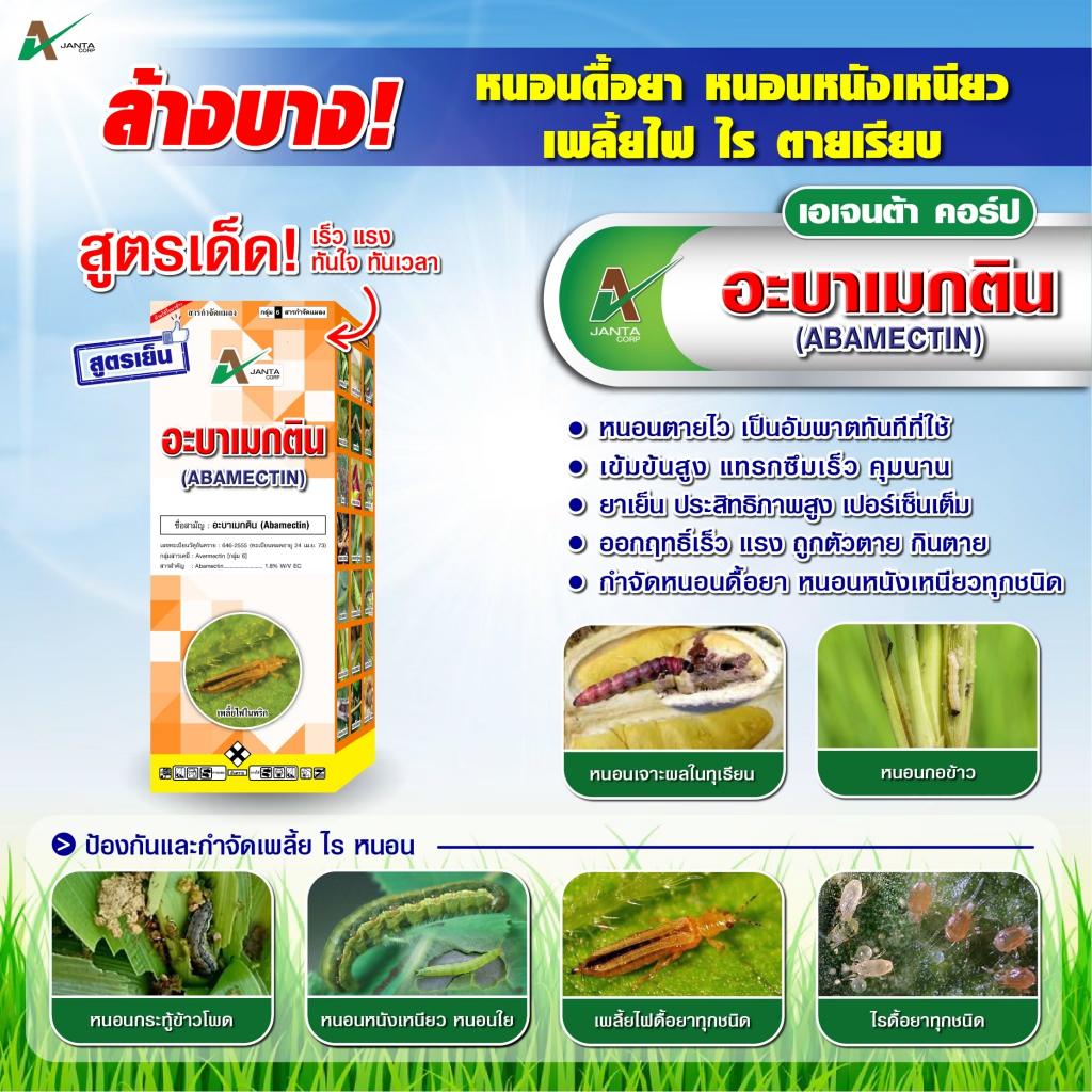 อะบาเมกติน ยาหนอน กำจัดหนอนชอนใบ เพลี้ยไฟ หนอนเจาะ หนอนดื้อยา เอเจนต้า คอร์ป (1 ลิตร)