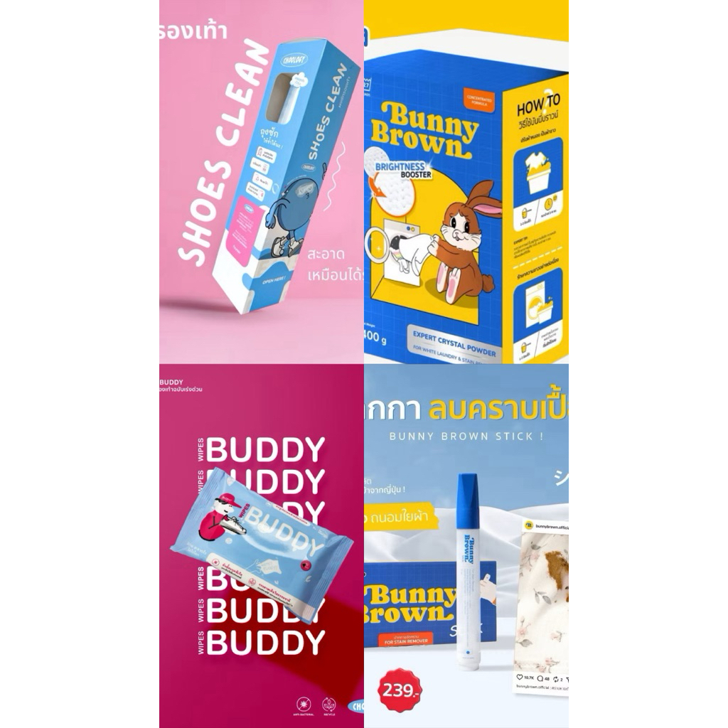 Bunny brown x Shoes clean ยกเซ็ต Bn1 กล่อง ผงซักรองเท้า12 ชิ้น ทิชชู่เช็ดรองเท้า 1 ปากกาลบคราบ1