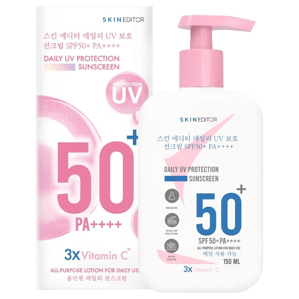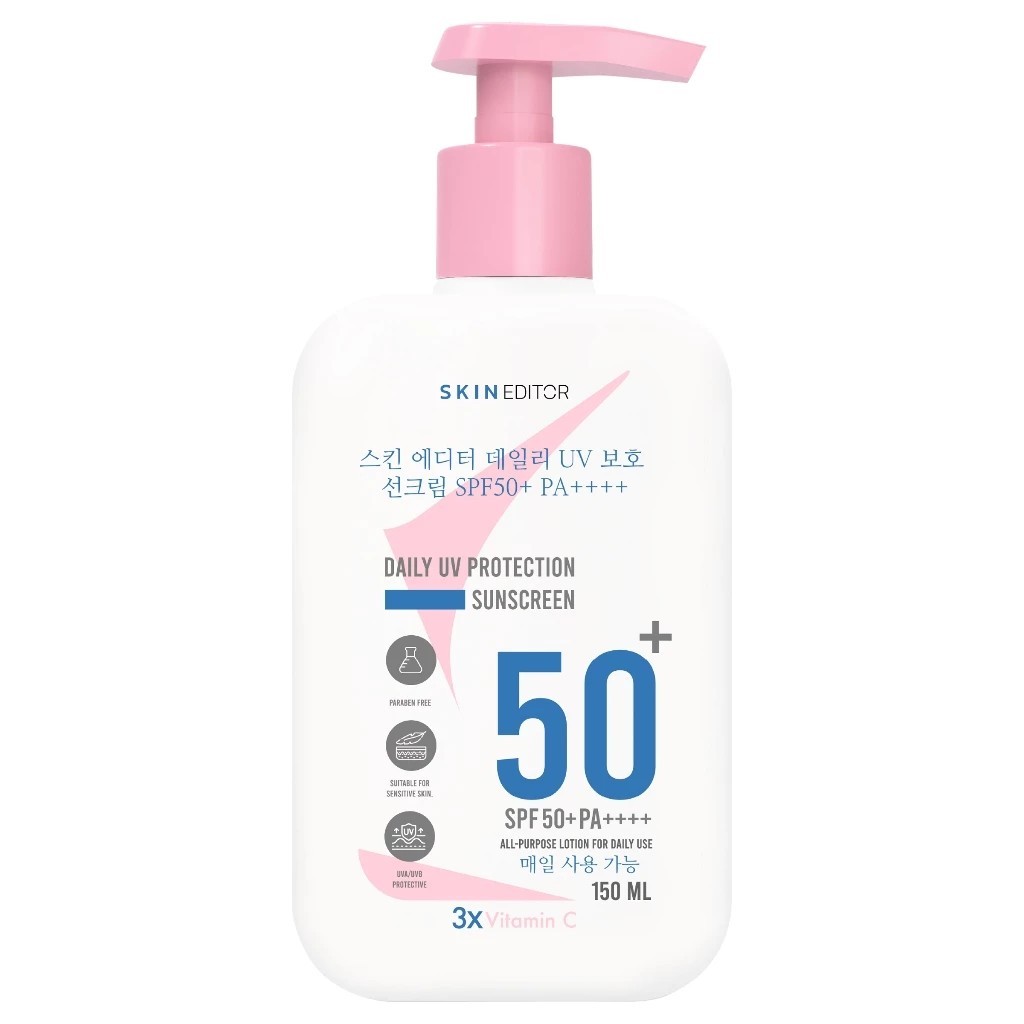 Skin Editor Daily Uv Protection Sunscreen Spf50+Pa++++ 150 ml.โลชั่นกันแดด กันน้ำ กันเหงื่อ