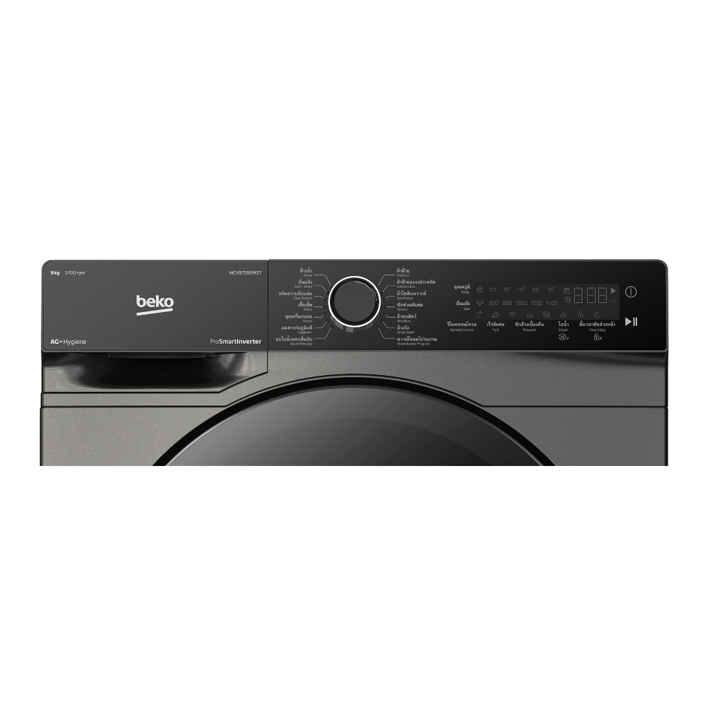 BEKO เครื่องซักผ้าฝาหน้า WCV9759XMST 9 กก. 1400 RPM อินเวอร์เตอร์ สีเทาเข้ม จัดส่งโดย HomePro