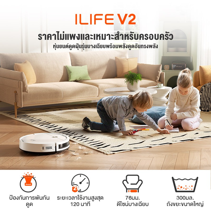 ILIFE V2 Robot Vacuum Cleaner หุ่นยนต์ดูดฝุ่นอัจฉริยะ 2600mAh เครื่องดูดฝุ่นในบ้าน อัตโนมัติ เครื่องดูดฝุ่น