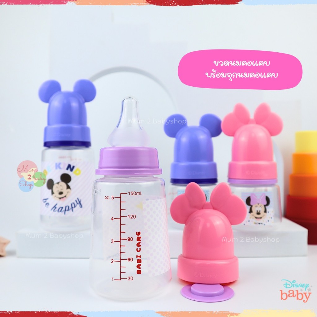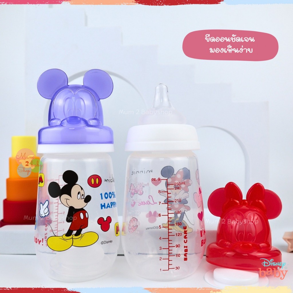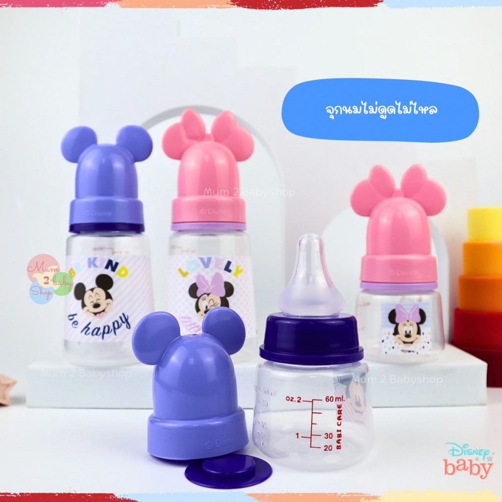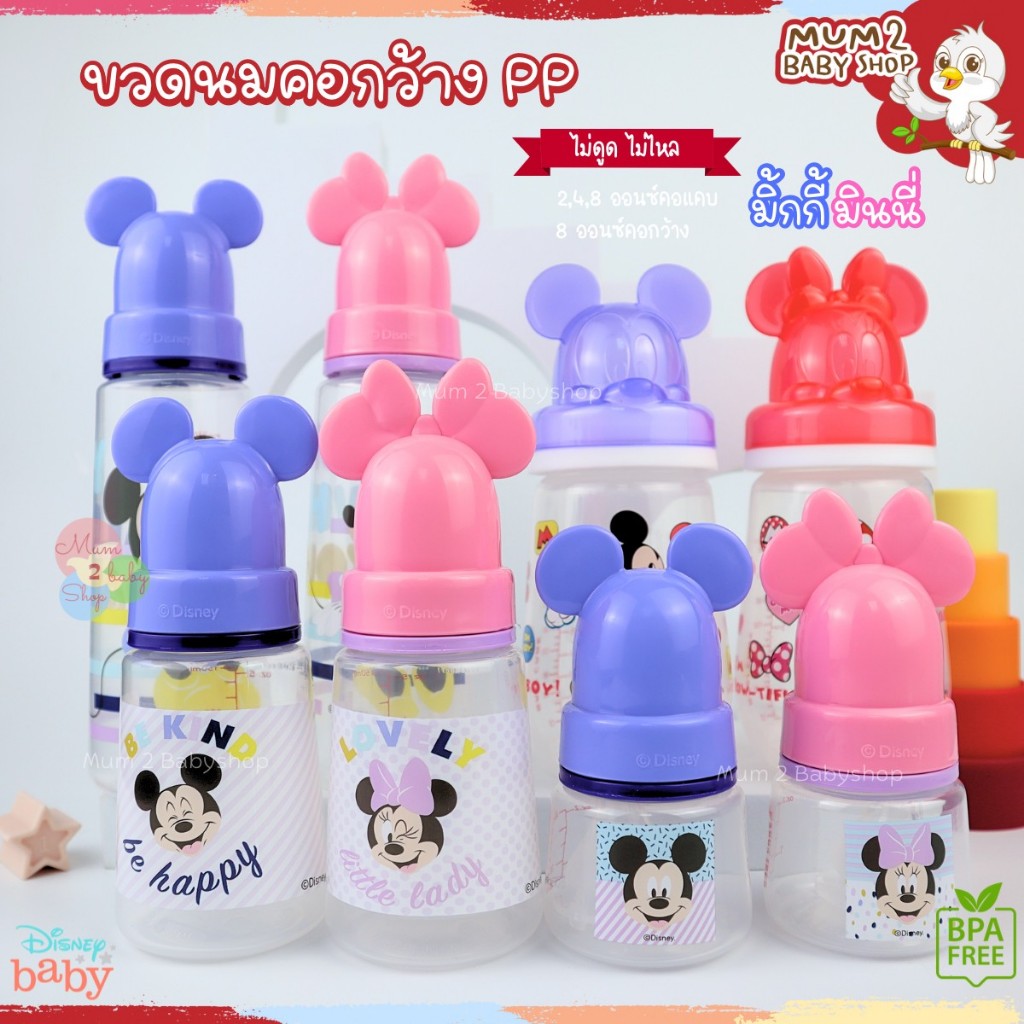 เบบี้แคร์ ขวดนม คอแคบ,คอกว้าง พร้อมจุกไม่ดูดไม่ไหล ขนาด2ออนซ์ ,4 ออนซ์ ,8 ออนซ์ มิกกี้มินนี้ Babicare