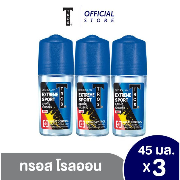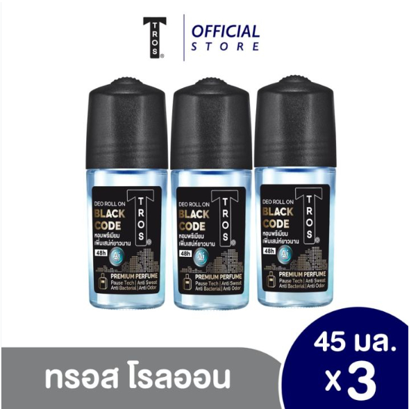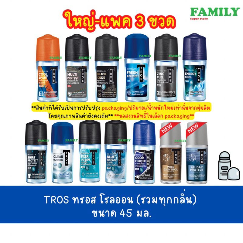[ขวดใหญ่,x3] TROS ทรอส โรลออนระงับกลิ่นกาย (ทุกกลิ่น) 45 มล.x แพค 3 ขวด