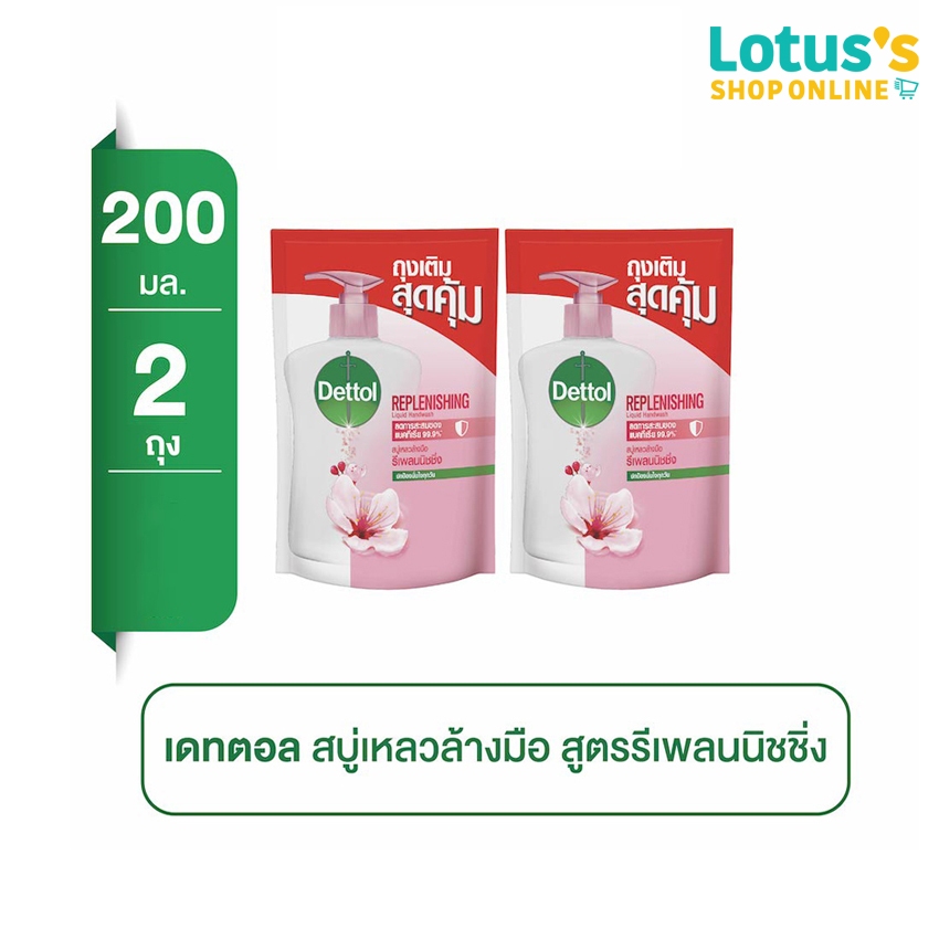 [ซื้อ 2 ชิ้น ราคาพิเศษ] เดทตอล สบู่เหลวล้างมือ สูตรรีเพลนนิชชิ่ง ถุงเติม 200 มล. DETTOL HAND SOAP REPLENISHING REFILL