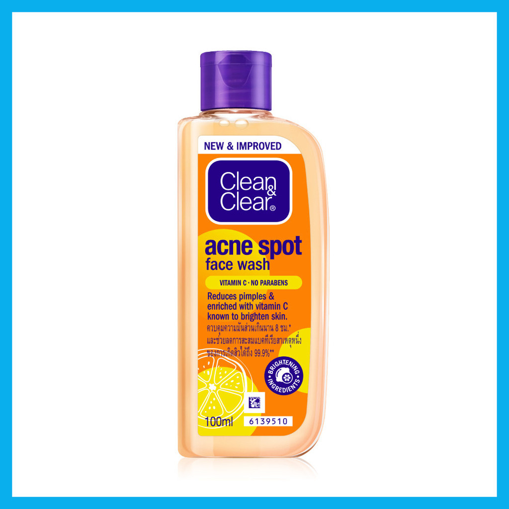 Clean & Clear Acne Spot Face Wash VitC 100ml คลีนแอนด์เคลียร์ เจลล้างหน้าสูตรสำหรับผิวมัน และผิวที่เป็นสิว.