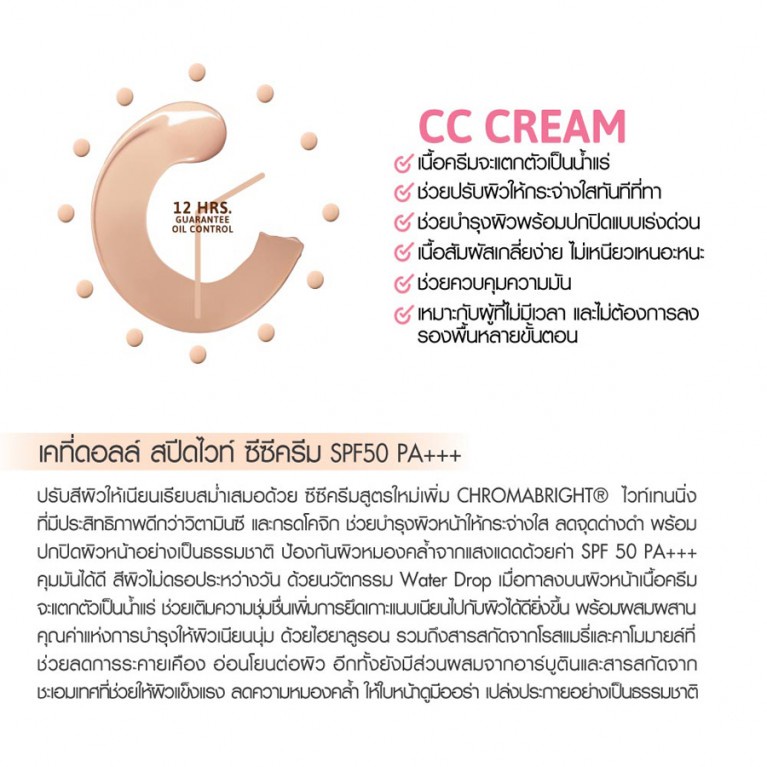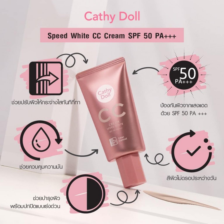(1หลอด) Cathy Doll Speed White CC Cream 50ml เคที่ดอลล์ สปีดไวท์ ซีซีครีม เอสพีเอฟ50 พีเอ+++