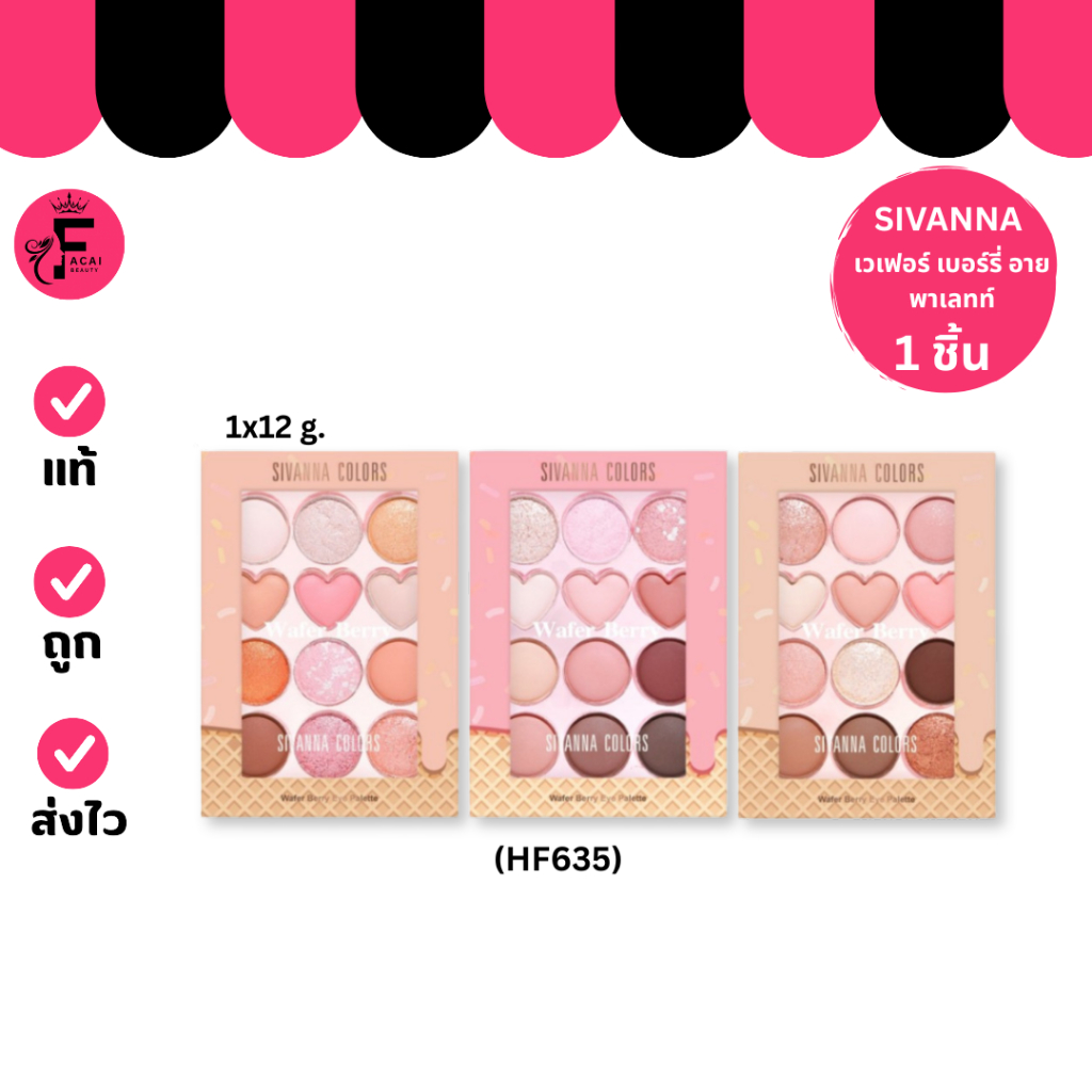 (1 ชิ้น) SIVANNA COLORS WAFER (HF 635) เวเฟอร์ เบอร์รี่ อาย พาเลทท์ทาตา 3 เบอร์ ( 1*12 g.)