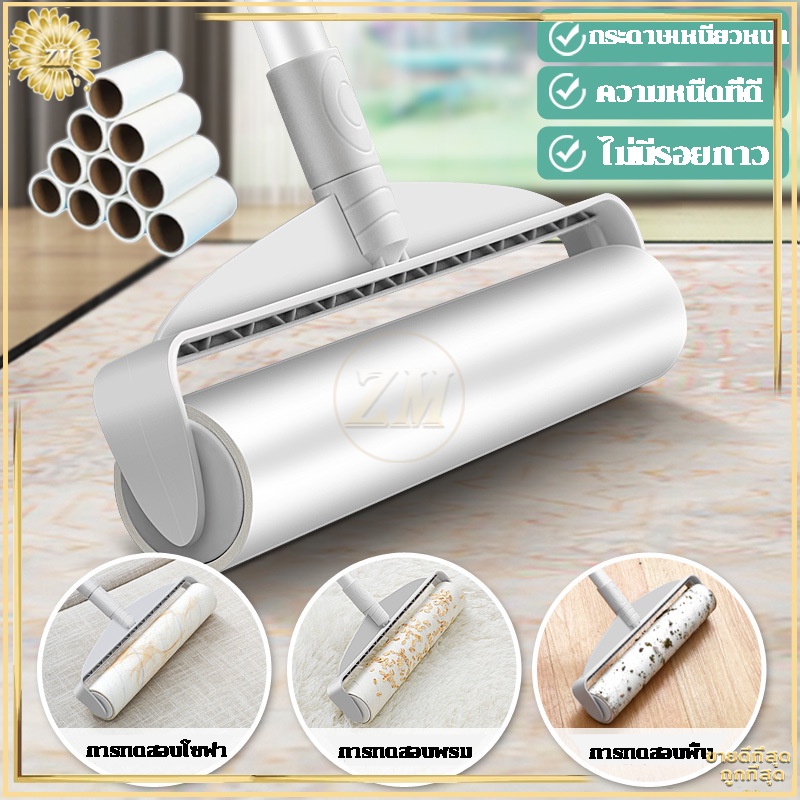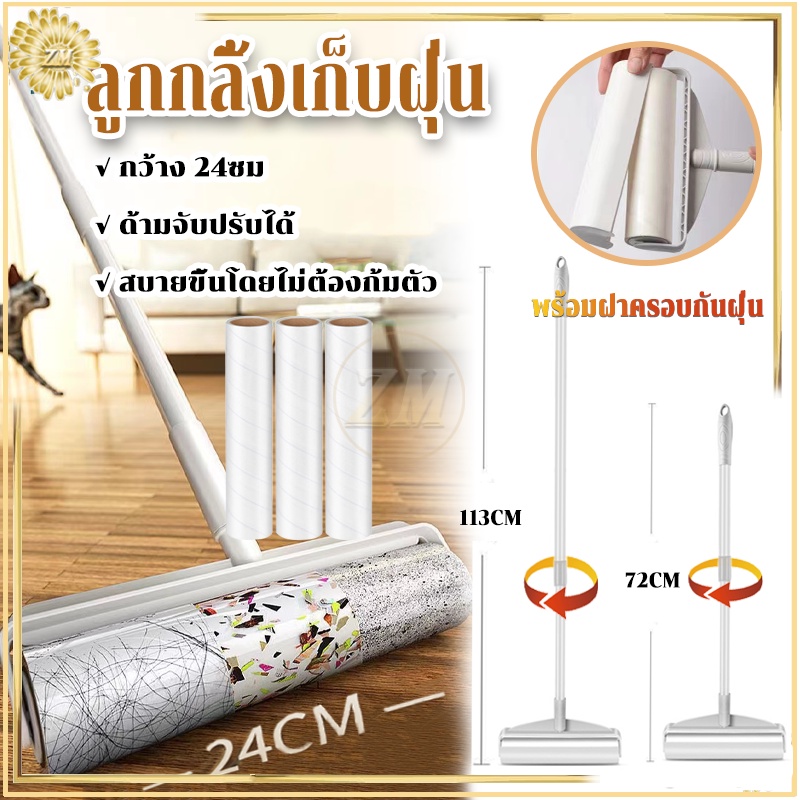 ลูกกลิ้งเก็บขน ลูกกลิ้งเก็บฝุ่น 24CM ด้ามจับปรับได้ ม้วนกาวรีฟิล พร้อมฝาปิดกันฝุ่น สะอาด ถูกหลักอนามัย