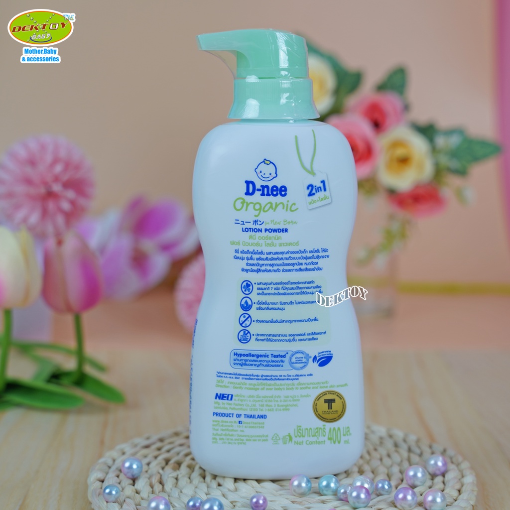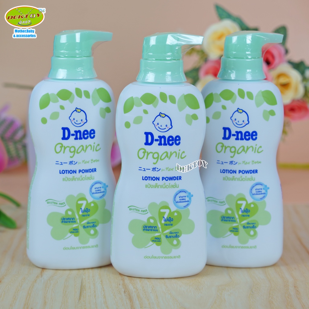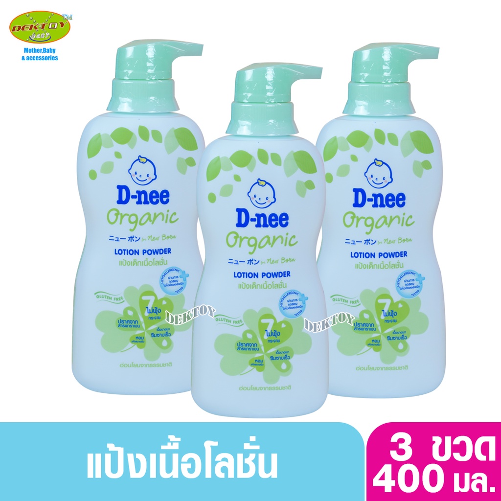 3 ขวด D-nee ดีนี่ แป้งเด็กเนื้อโลชั่น ดีนี่ ออร์แกนิค ฟอร์นิวบอร์น โลชั่น พาวเดอร์ 400 มล.