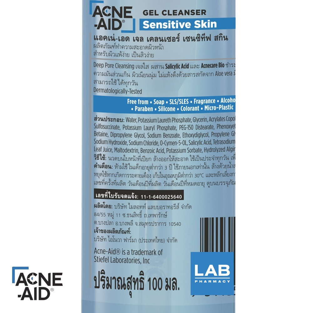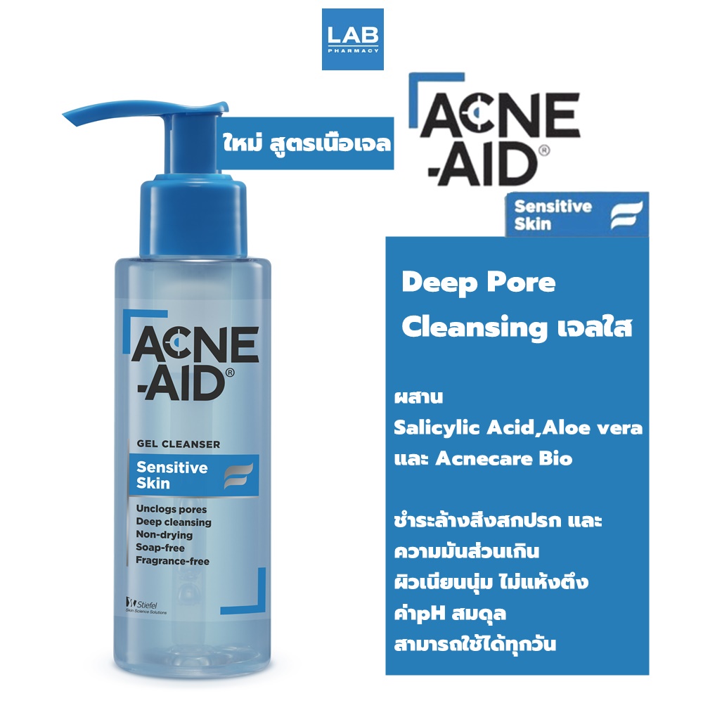 Acne-Aid Gel Cleanser Sensitive Skin 100 ml. - แอคเน่-เอด ผลิตภัณฑ์ทําความสะอาดผิวหน้า เนื้อเจลใส