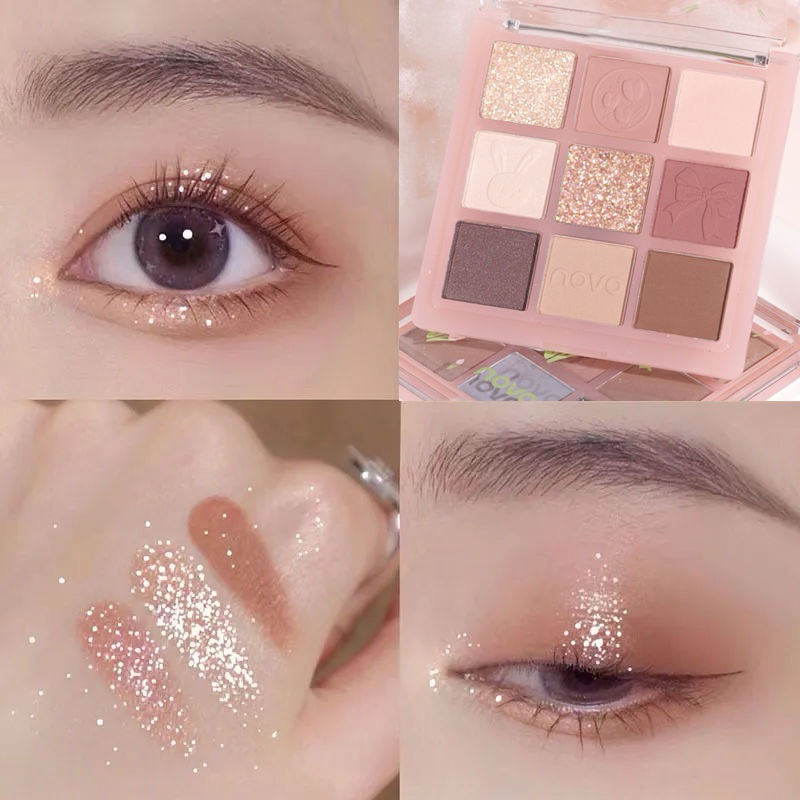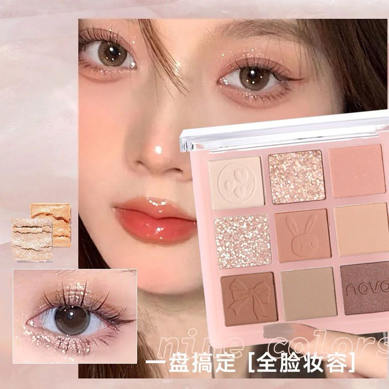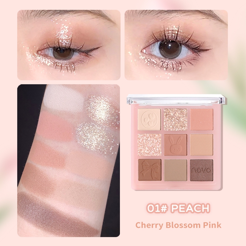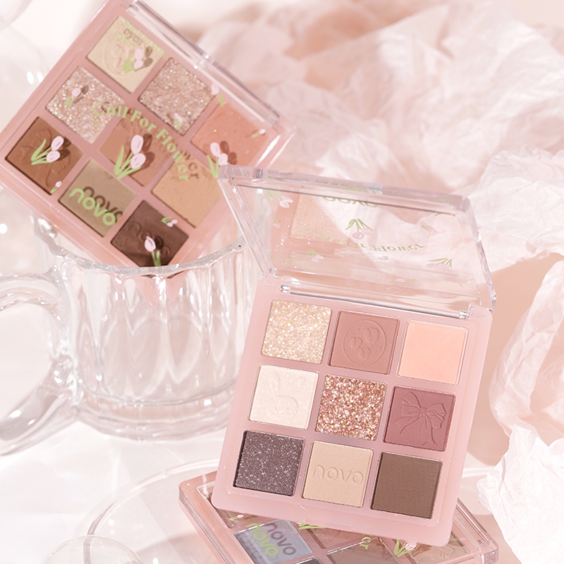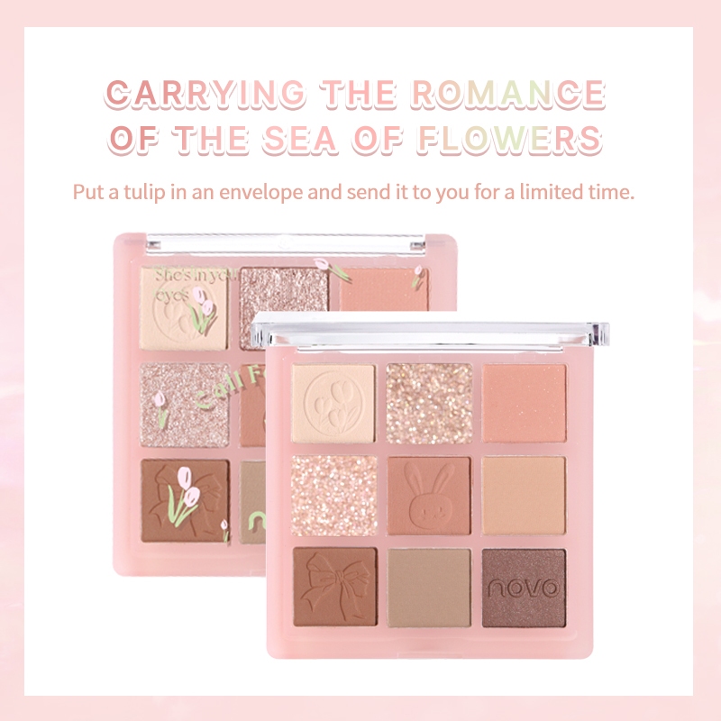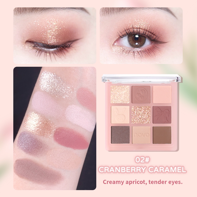 5911 (ใหม่/แท้) NOVO พาเลท อายแชโดว์ 9 สี เนื้อใยไหม ประกายชิมเมอร์ Eye shadow