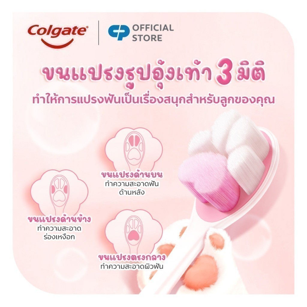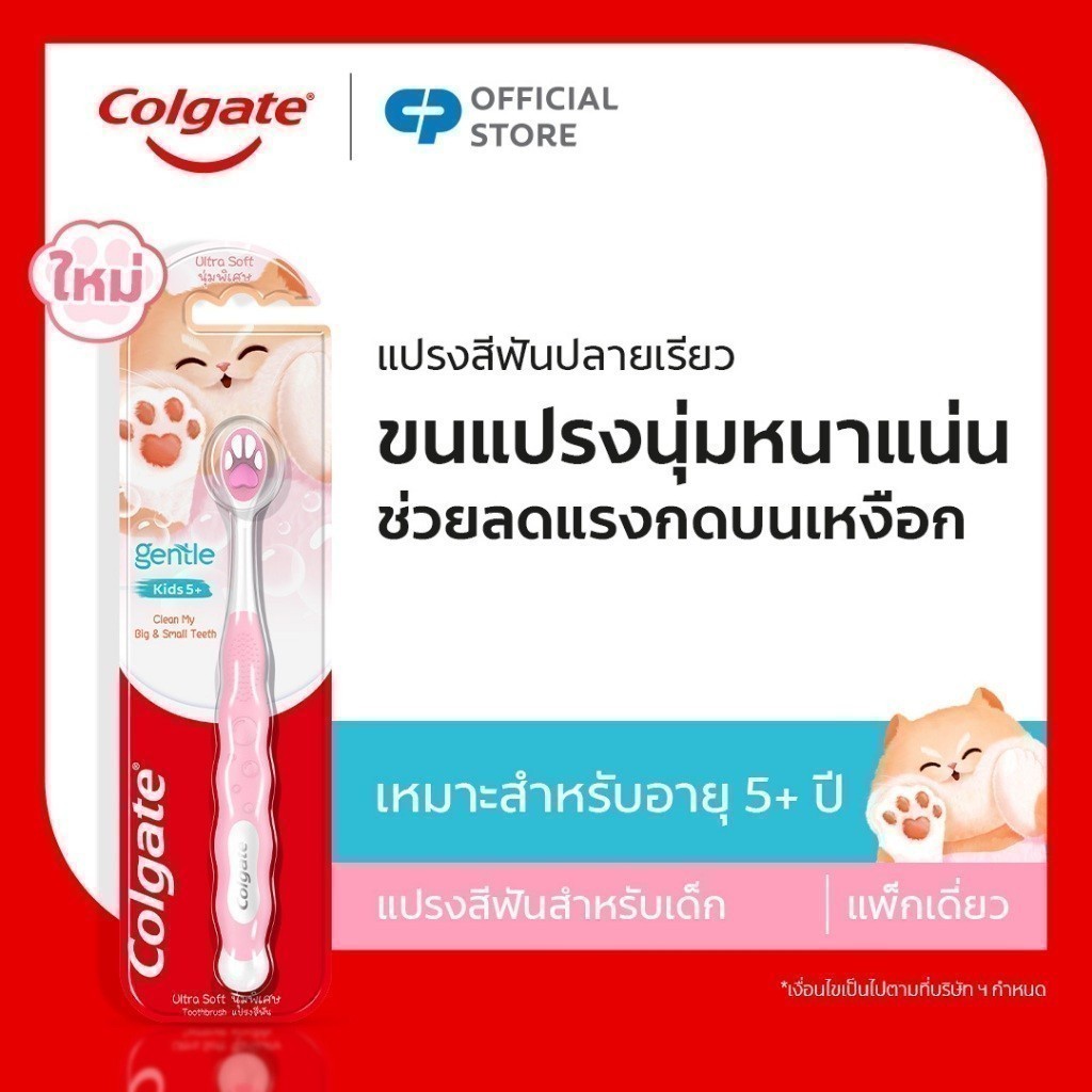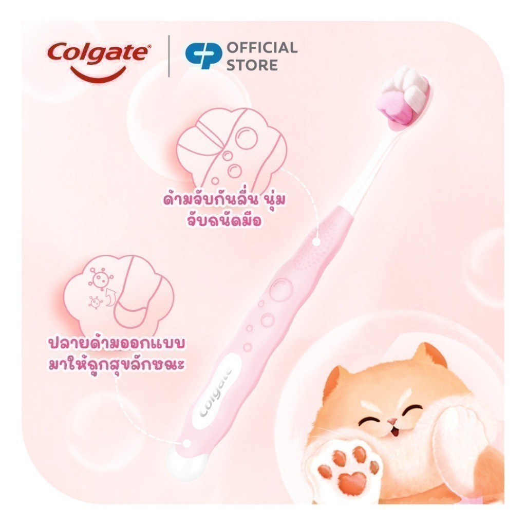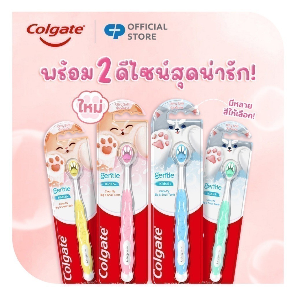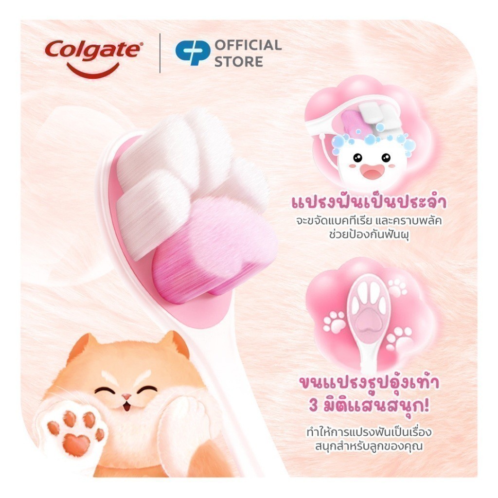 [มี 2 แพ็คให้เลือก] แปรงสีฟันเด็ก คอลเกต เจนเทิล ฟลัฟฟี่ พอว์ Colgate Gentle Kids Fluffy Paw Toothbrush (คละสี)