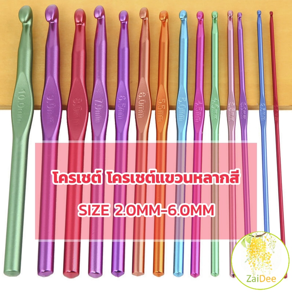 เข็มโครเชต์อลูมิเนียม 2.0-6.0 mm อุปกรณ์โครเชต์ ความยาว เข็มควักไหมพรม Aluminum Crochet Hooks Set