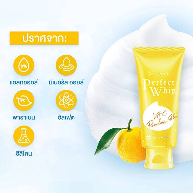 วิปโฟมล้างหน้า Senka เซนกะ เพอร์เฟ็ค วิป วิตซี พอร์เลส โกลว์ 100 กรัม / 50 กรัม