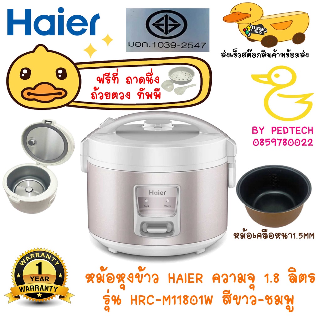 หม้อหุงข้าว HAIER รุ่น HRC-M11801W ความจุ 1.8 ลิตร สีขาว-ชมพู