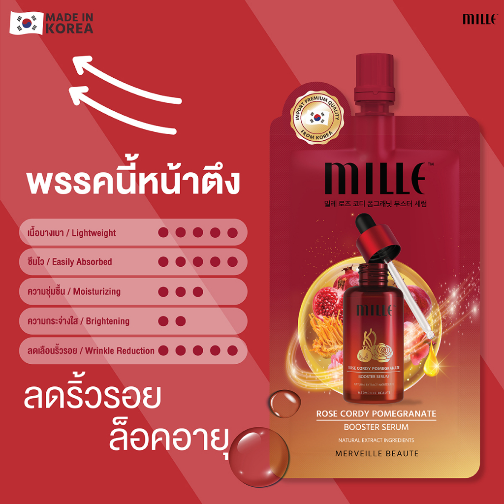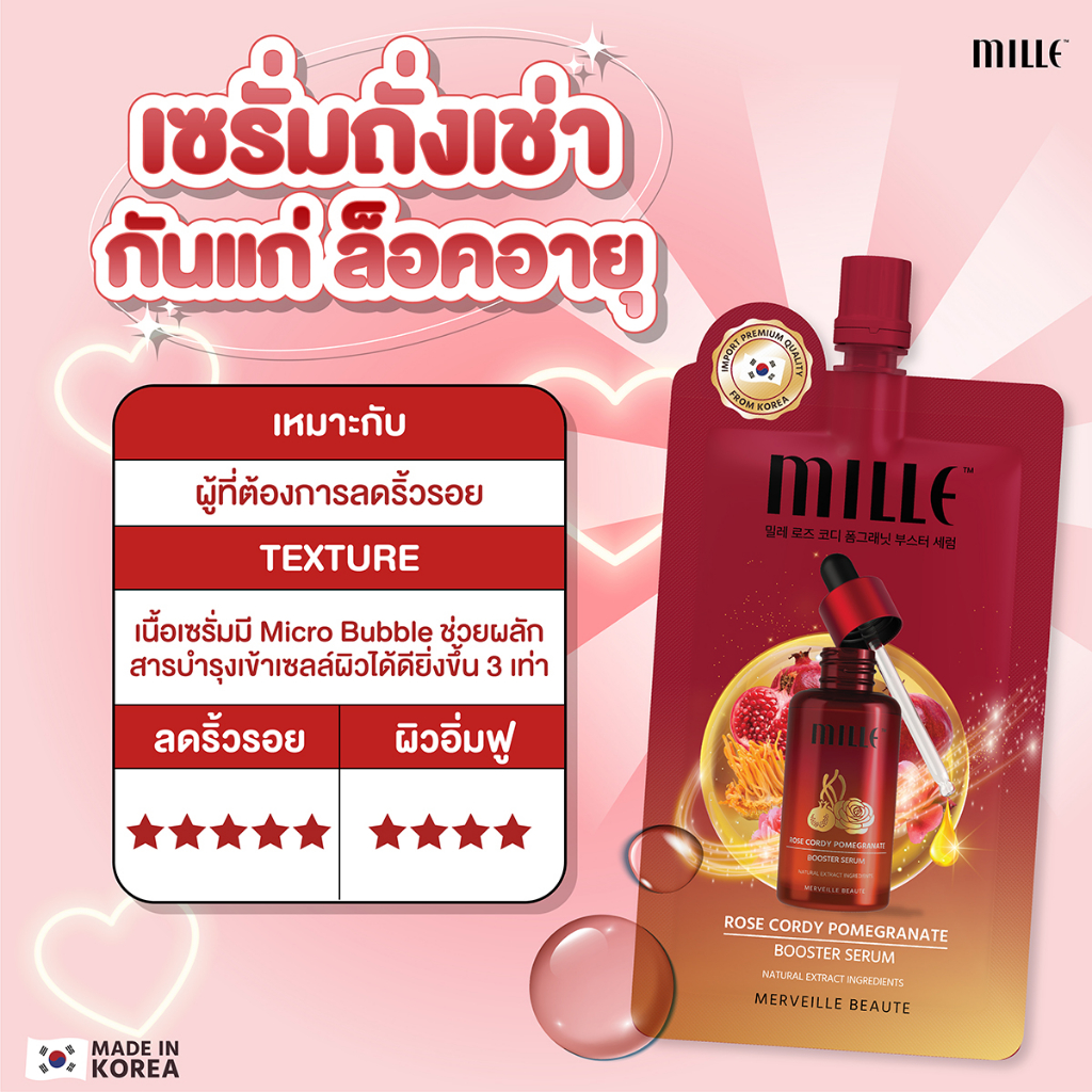 [SALE] MILLE Rose Cordy Serum & Booster Essence มิลเล่ บูสเตอร์ เซรั่ม ถั่งเช่า เอสเซนส์ ผิวสวย น้ำโสม กุหลาบ น้ำตบ